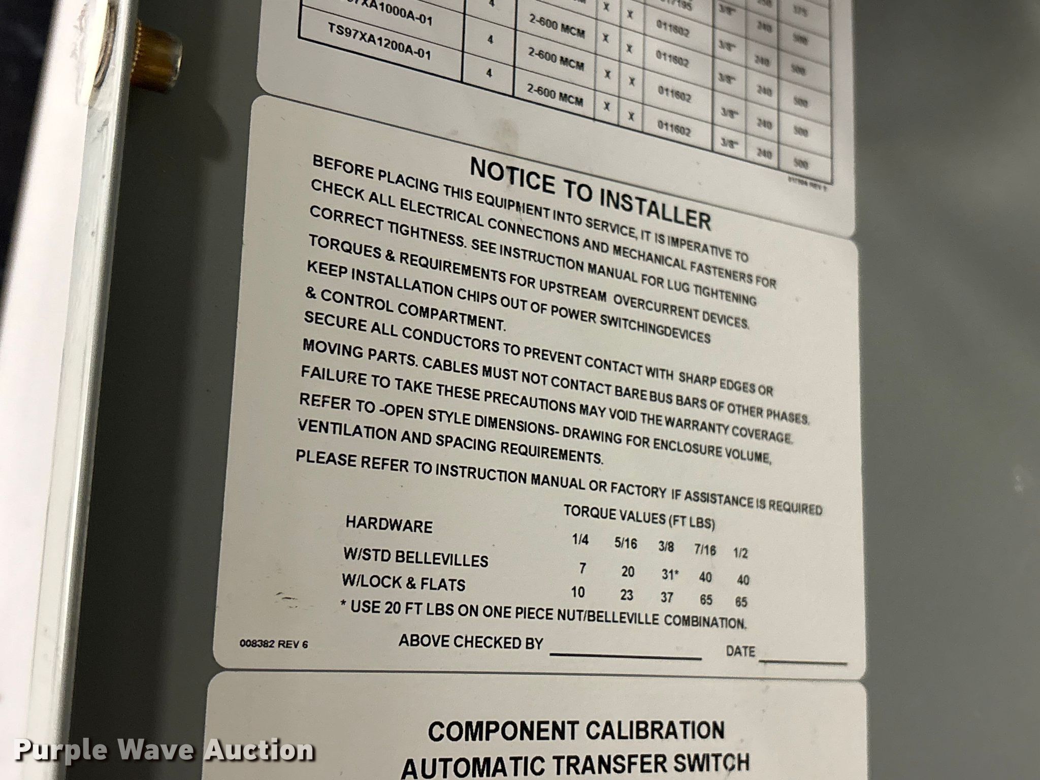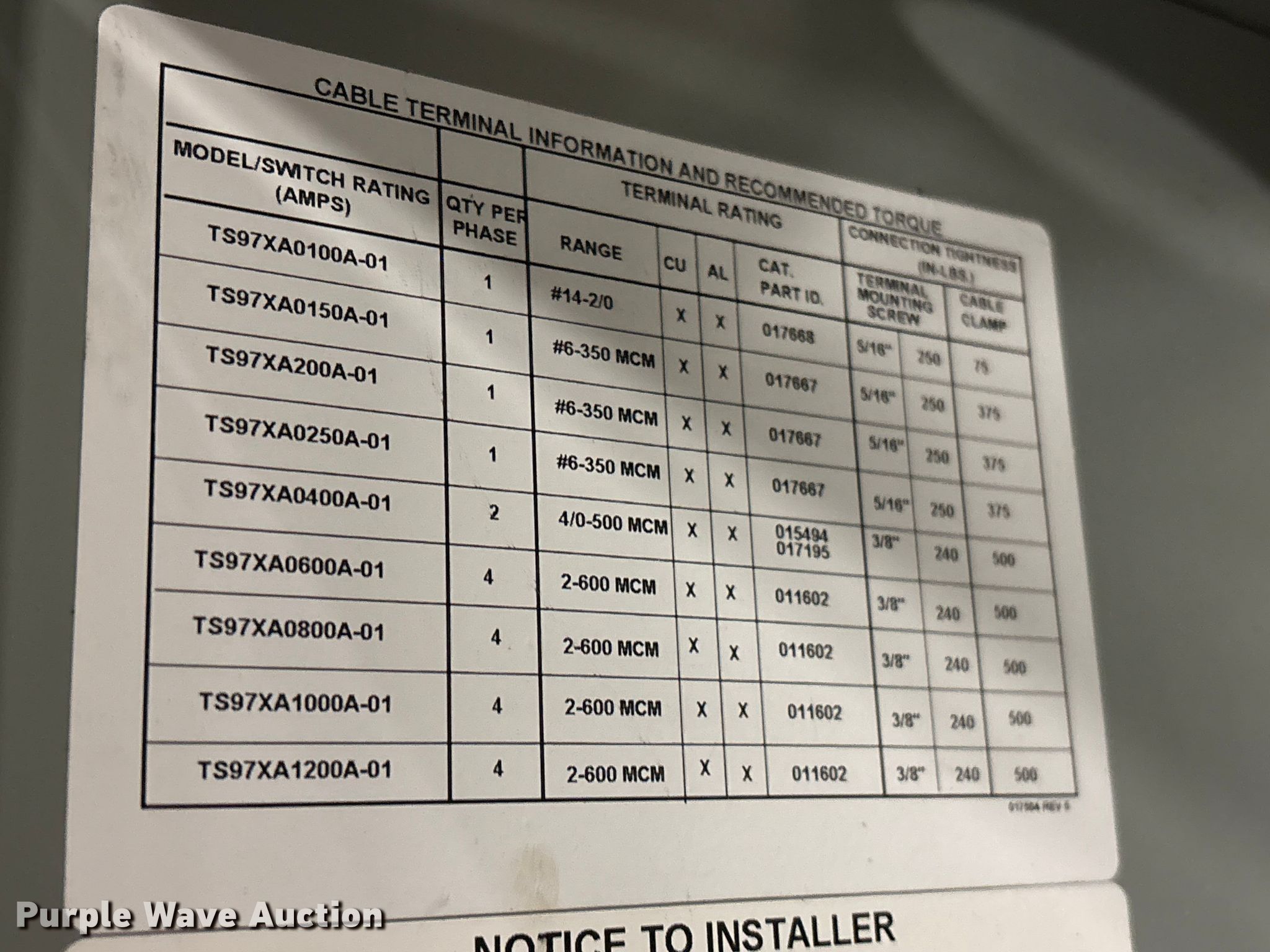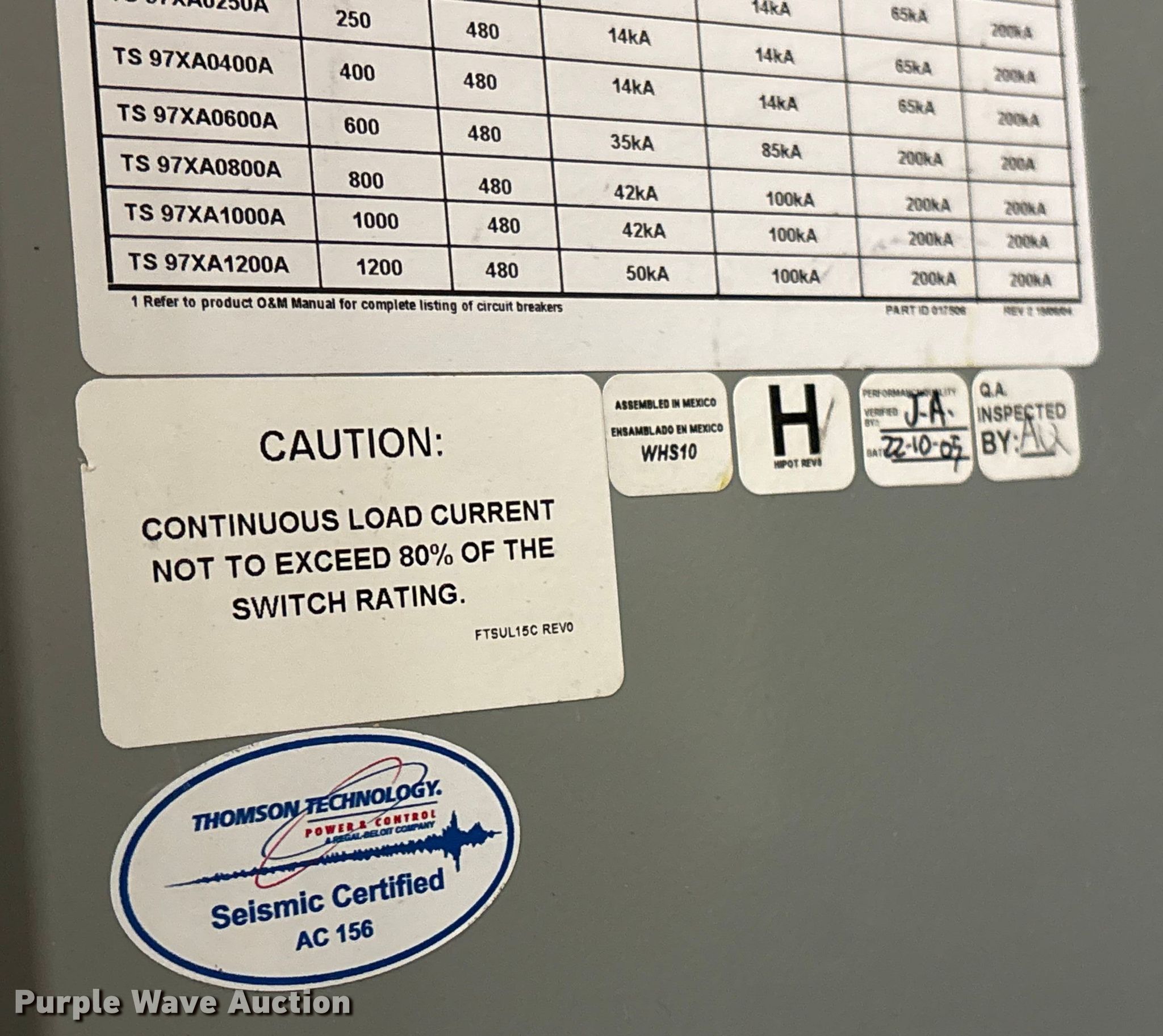 2022 Thompson ATS TS974A0400A1CZ5 transfer switch for sale in De Pere, Wisconsin. Item FK1510 will sell on February 26th, 2026.