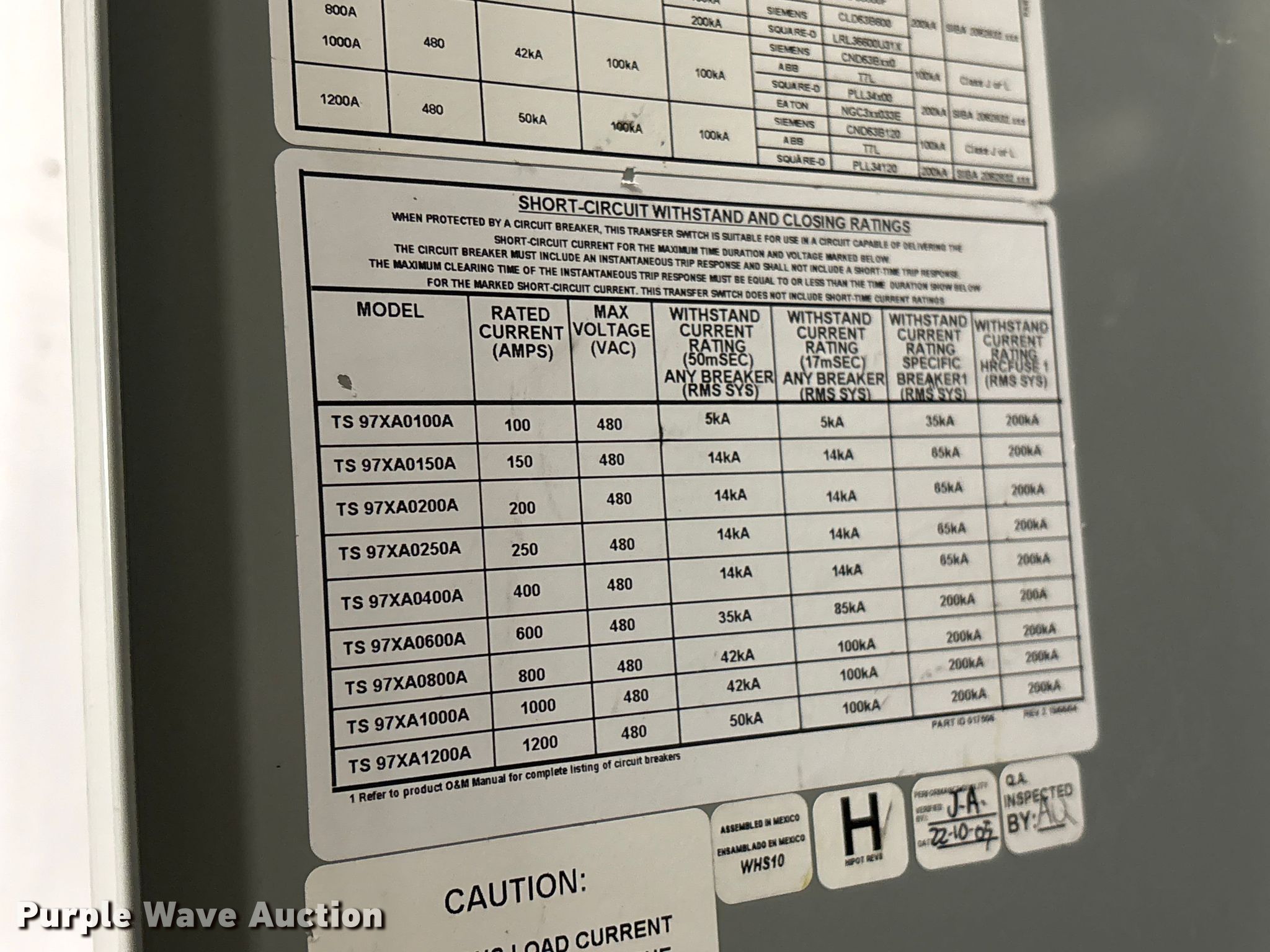 Purple Wave is selling a used Building Materials in Wisconsin. This item is a 2022 Thompson ATS TS974A0400A1CZ5 transfer switch with the following: Serial: MW-065717-001, Volts: 480, Amps: 400, Hertz: 50/60, Phase: 1-3
