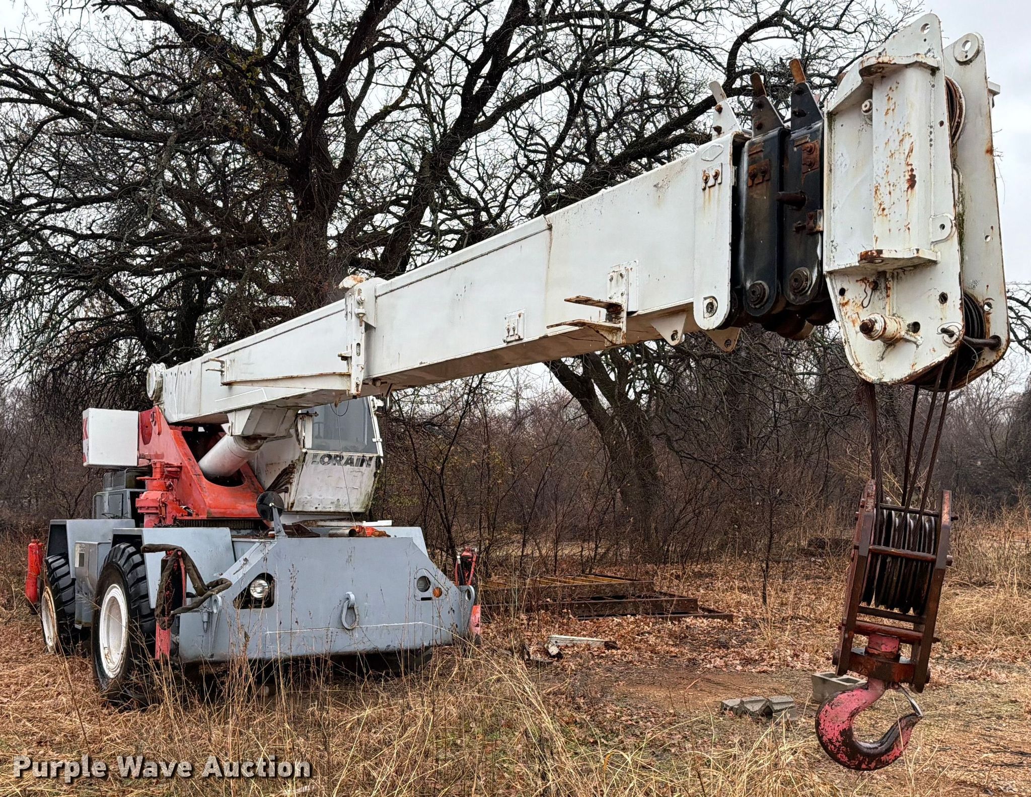Purple Wave is selling a used Rough or All Terrain Crane in Texas. This item is a Lorain LRT 275D crane with the following: Hours: 5,167 on meter, Serial: 79927