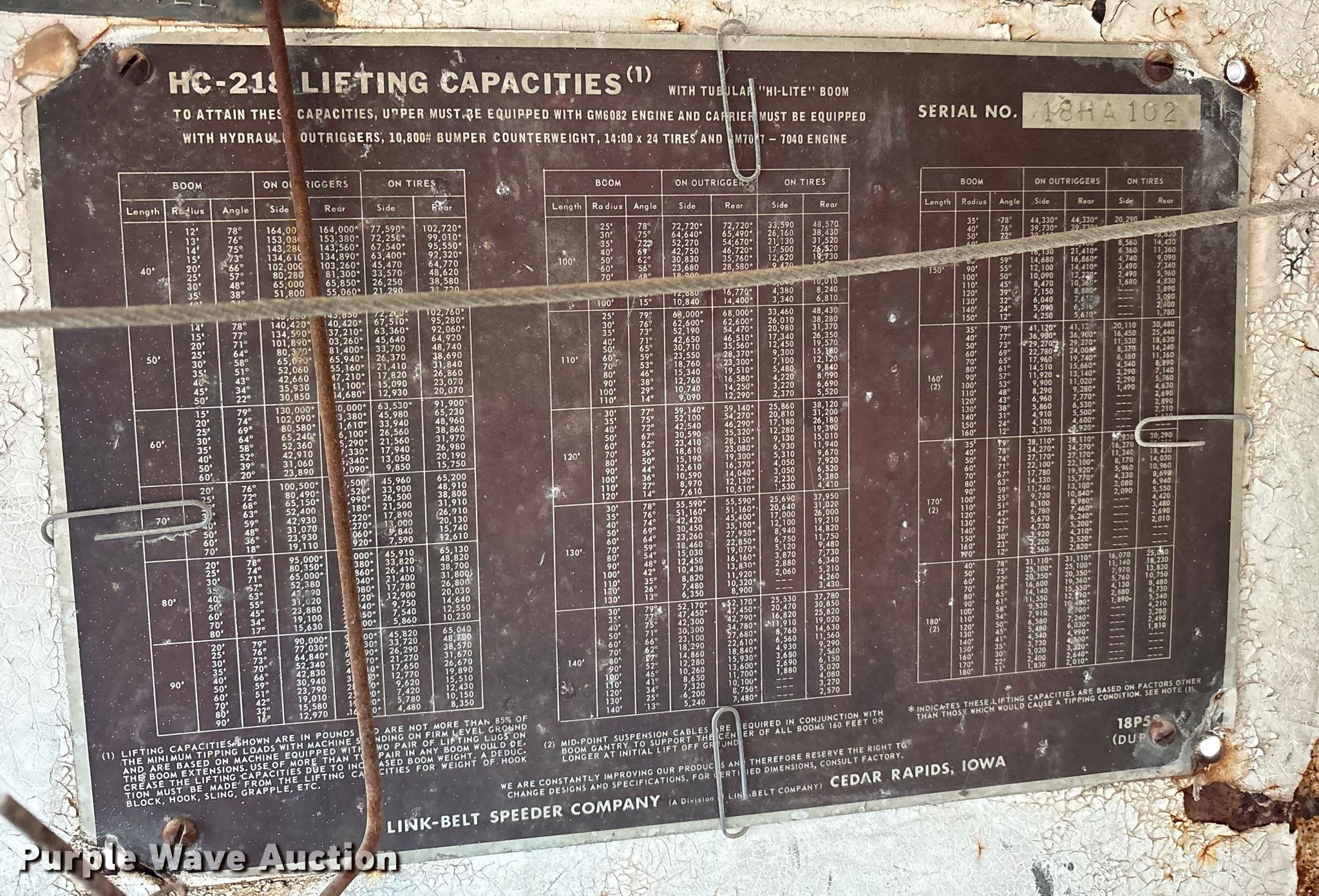 Purple Wave is selling a used Rough or All Terrain Crane in Texas. This item is a 1965 Link belt HC-218 crane truck with the following: Miles: Unknown, Hours: Unknown, Serial: 18HA102