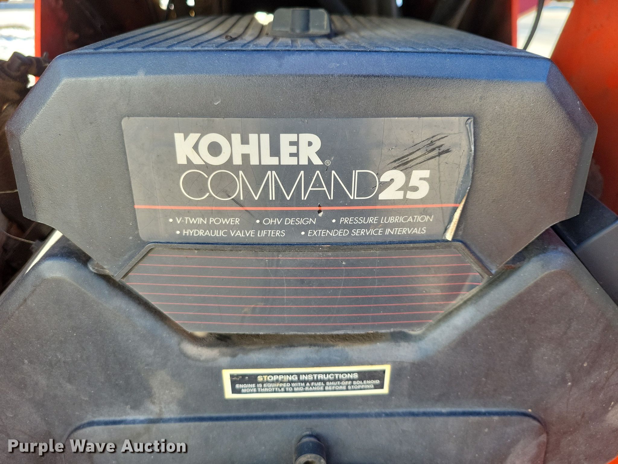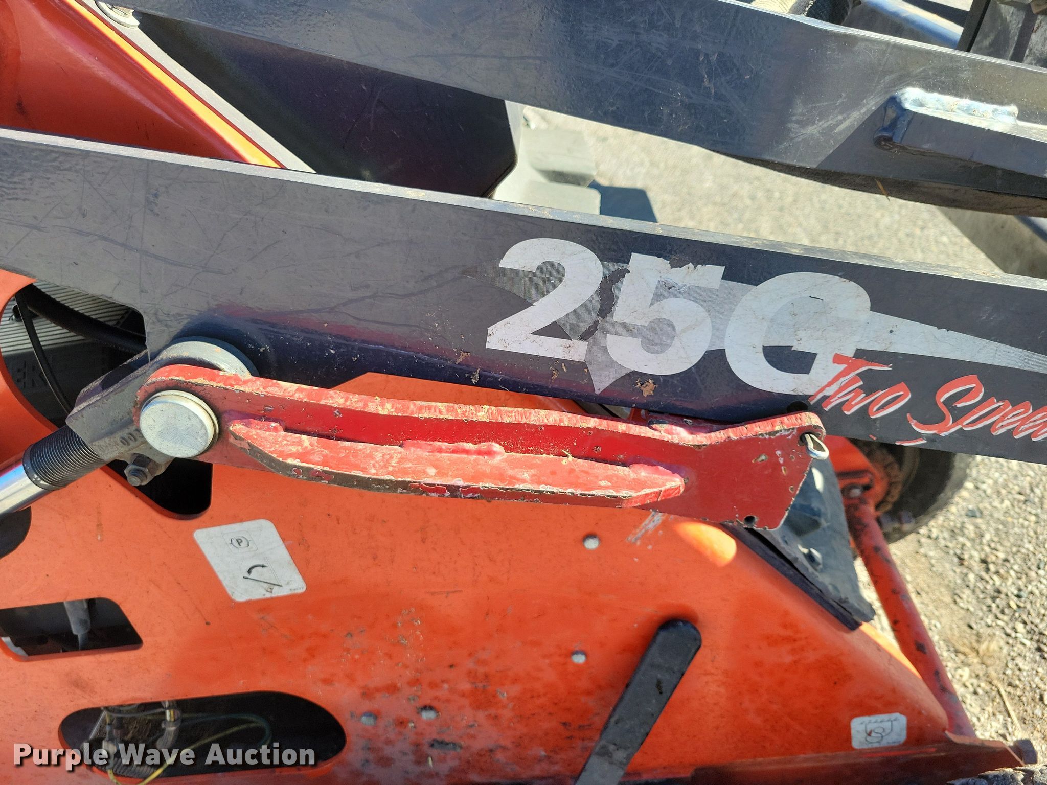 2002 Thomas 25G compact utility loader. Hours: 200 on meter, Serial: 6509944. Engine Kohler Command 25, Cylinders: 2, Fuel type: Gas, HP: 25. Transmission Two speed travel. Operators station Bucket control: Hand. Features Auxiliary hydraulics, Quick coupler: Manual, Bucket Width: 42", Cutting edge: Weld-on, Wood splitter Width: 20", Log forks. Tires Size: 18X8.5-8. Notes Lift arm pivot bolt broken. Hernandez Tree Removal. Mason City , IA 50401