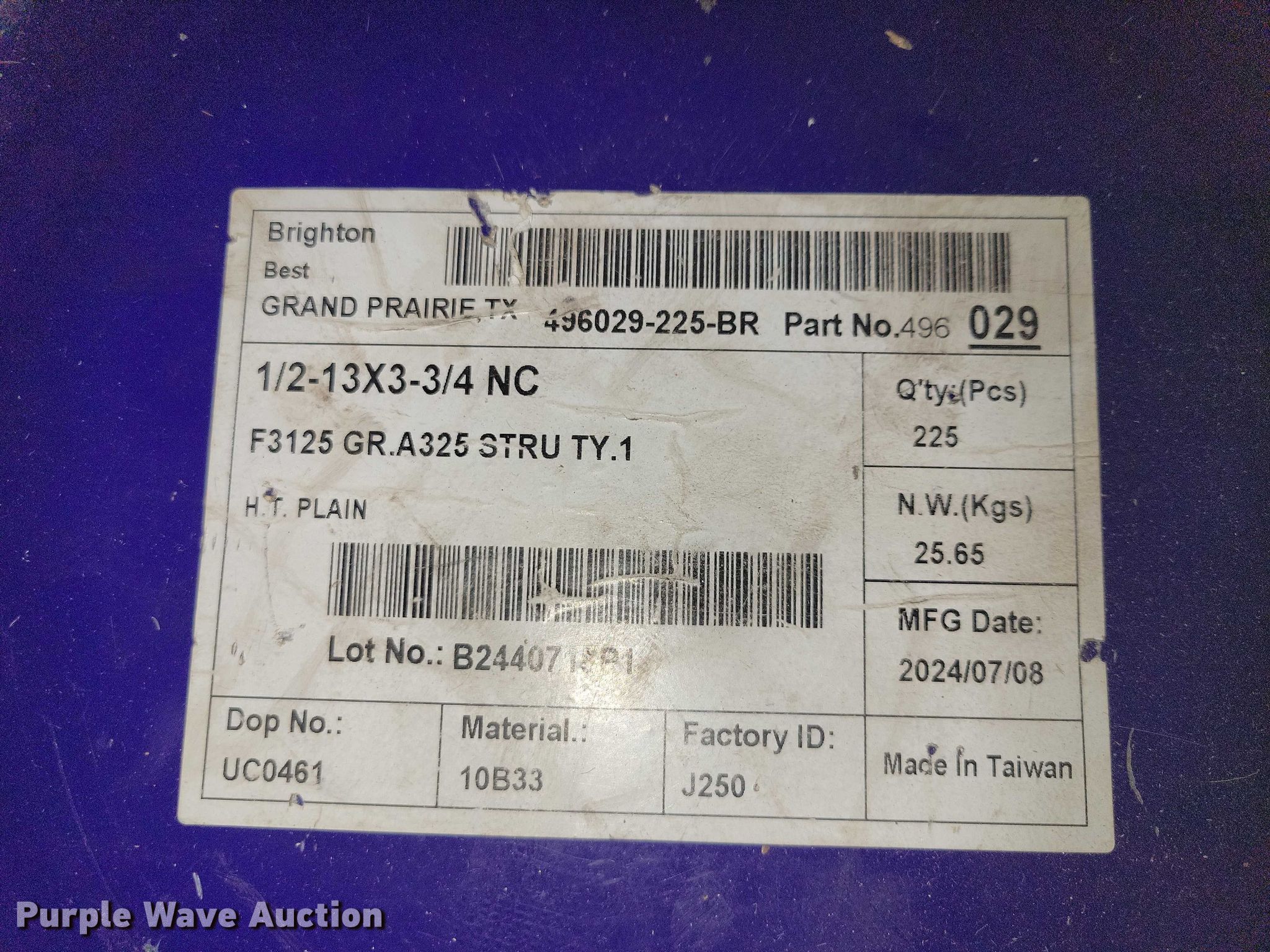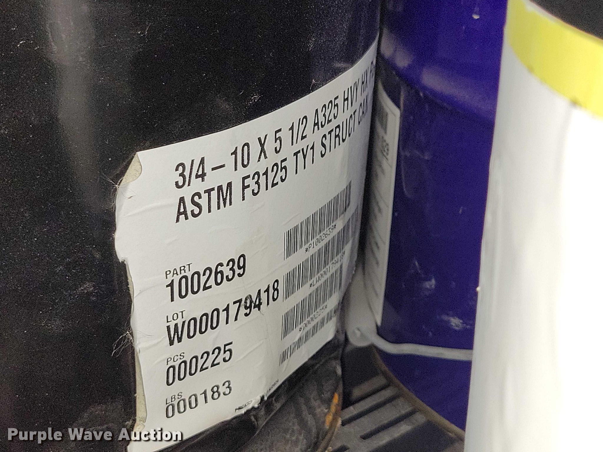 Purple Wave is selling a used Tools in Iowa. This item is a Hardware with the following: Bolts, 1/2", 3/4", Unused