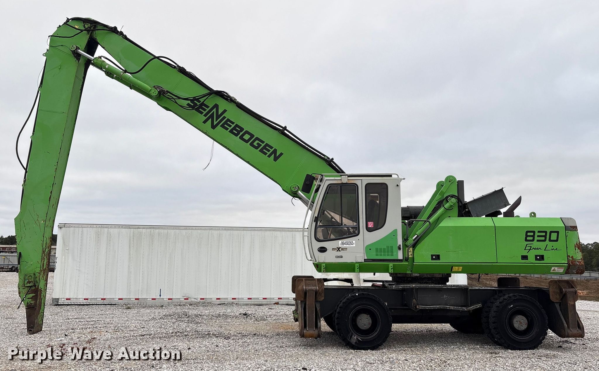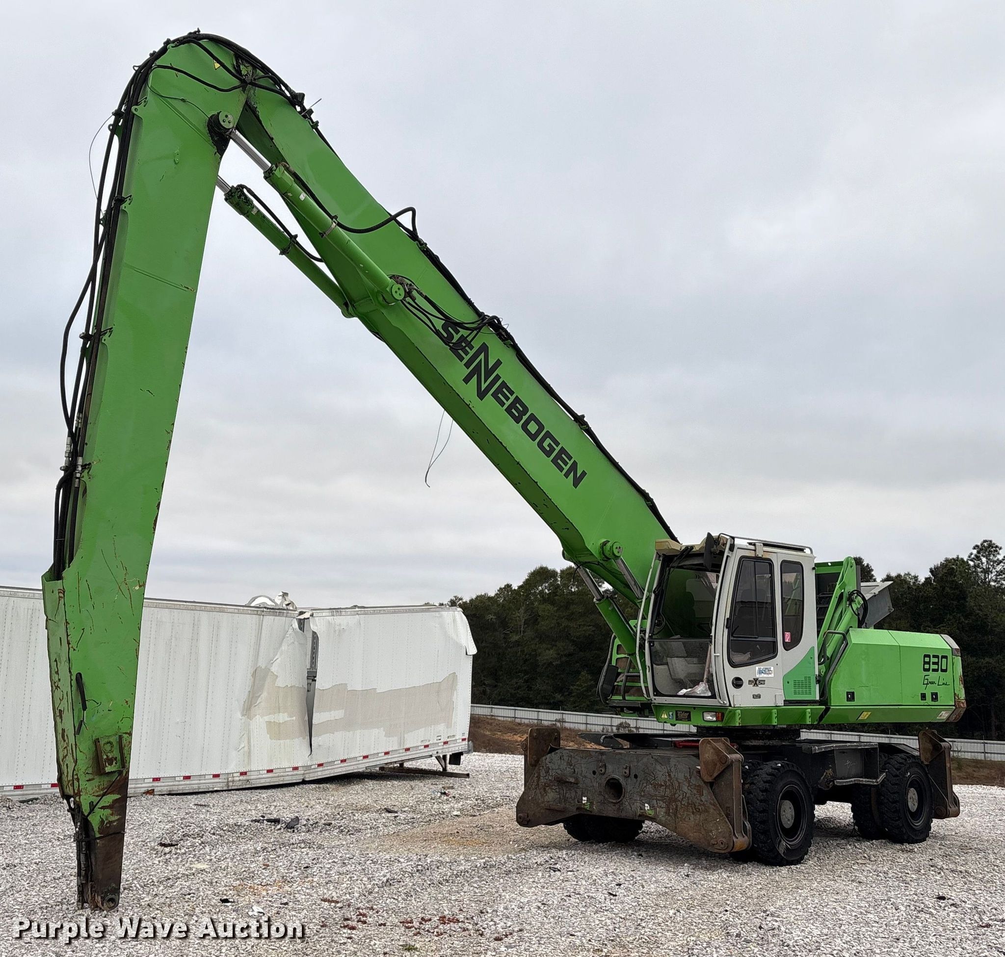Purple Wave is selling a used Wheeled Excavator in Alabama. This item is a 2008 Sennebogen 830 material handler with the following: Hours: 11,396 on meter, Serial: 83001107, Unit #: 86450265
