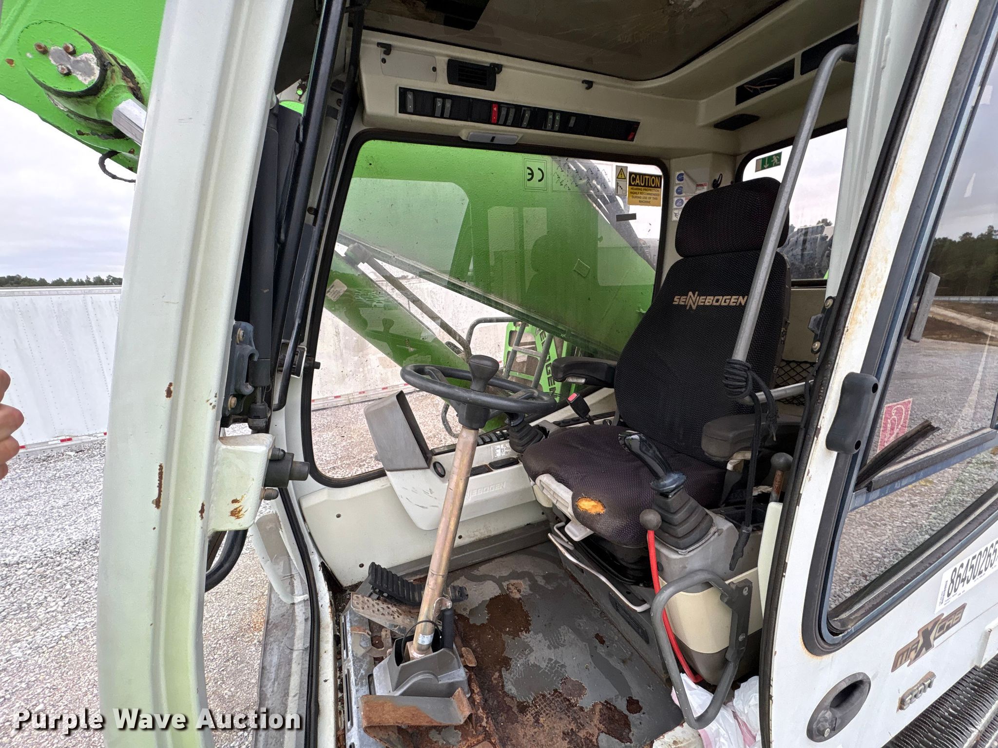 2008 Sennebogen 830 material handler. Hours: 11,396 on meter, Serial: 83001107, Unit #: 86450265. Engine Cummins QSB6.7, Serial: 21821656, Displacement: 6.7L, Cylinders: 6, Fuel type: Diesel. Transmission Hydrostatic. Operators station Enclosed cab, AC, Heat. Features Boom Standard, Stick Stick length: 21' 10", Long reach. Tires Size: 12.00-20, Brand: Trelleborg. Notes Glass cracked, Glass missing, Possible outrigger issues, will not lower, Non-operational dash cluster, Non-operational gauges. Repossessed item, stored at a secured facility. Please review REQUIRED REMOVAL INSTRUCTIONS. Lender Owned. 4763 Lott Road. Eight Mile, AL 36613