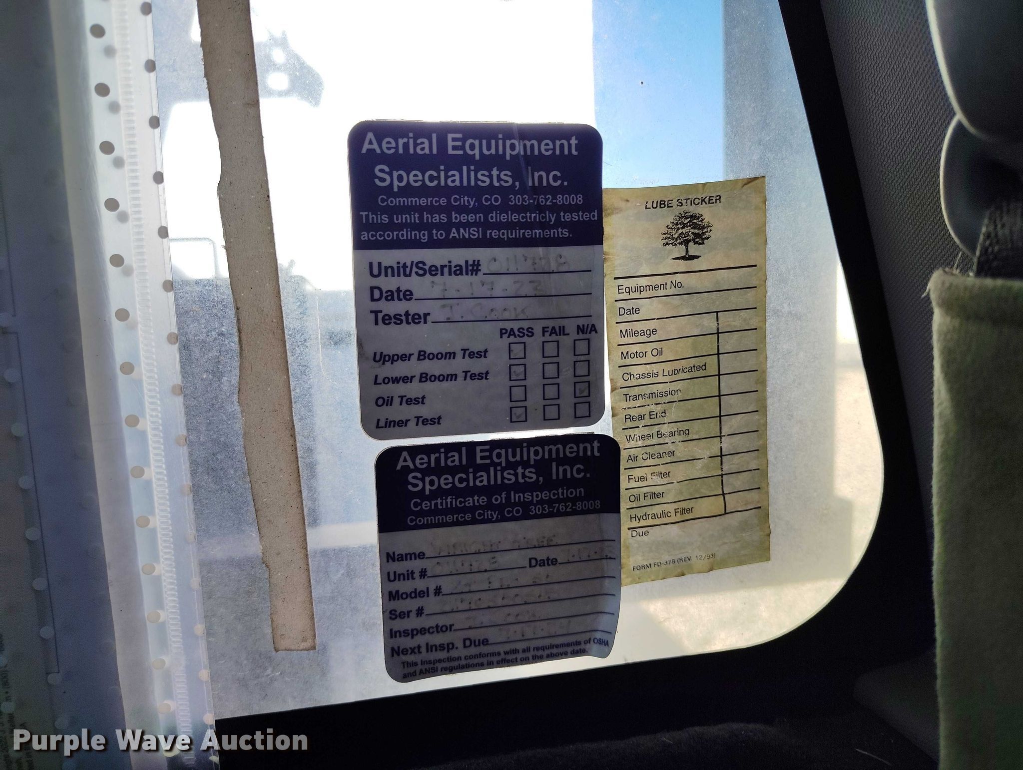 2017 Ford F750 Super Duty forestry bucket truck. Miles: 59,506 on odometer, VIN: 1FDNF7DCXHDB07140, Unit #: 65797345. Engine Displacement: 6.7L, Cylinders: 8, Fuel type: Diesel. Transmission Automatic. Chassis Axles: Single, Suspension: Spring, Brakes: Hydraulic, PTO, GVWR: 25,999 lbs, Wheelbase: 194". Interior AC, Heat, Cruise control, Auxiliary controls. Features Bed Length: 15' 2", Width: 96", Boom 2017 Terrex XT Pro 56, Serial: 2170560565, Maximum lift capacity: 400 lbs, Maximum lift height: 56', Boom type: Articulating, Insulated, Man basket, Boom controls Ground, Platform/ basket.. Tires Size: 11R22.5. Notes Dash warning indicator: Check engine, Jump start required during on-site data collection, Transmission issues Non-operational reverse. Fleet inventory reduction, stored at a secured facility. Please review REQUIRED REMOVAL INSTRUCTIONS. Titles will be distributed after confirmation of payment and removal. Iowa title. Title distribution may be delayed up to 30 days from verification of funds. Fleet Inventory Reduction. Casper, WY 82601