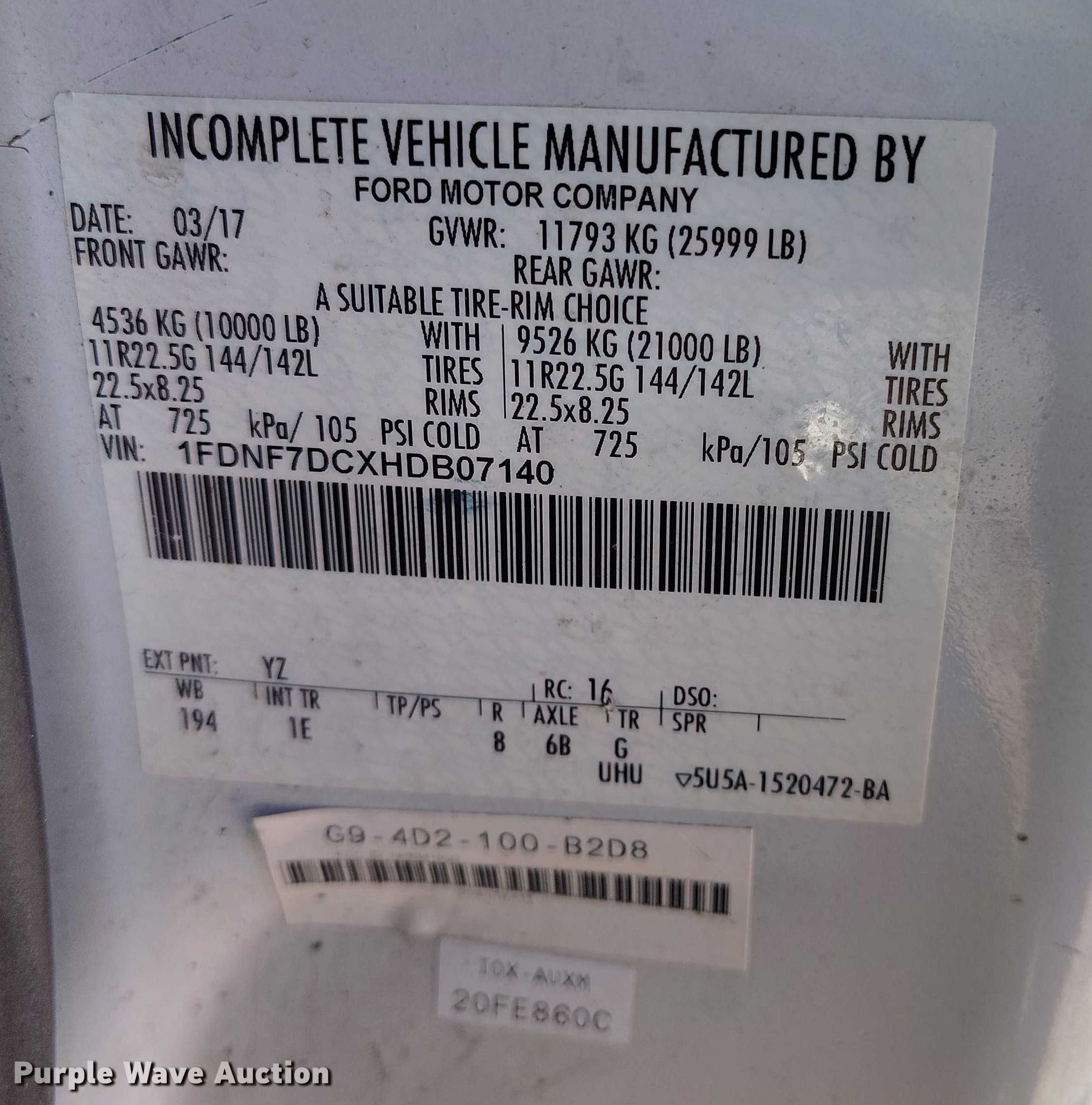 Purple Wave is selling a used Bucket Truck in Wyoming. This item is a 2017 Ford F750 Super Duty forestry bucket truck with the following: Miles: 59,506 on odometer, VIN: 1FDNF7DCXHDB07140, Unit #: 65797345