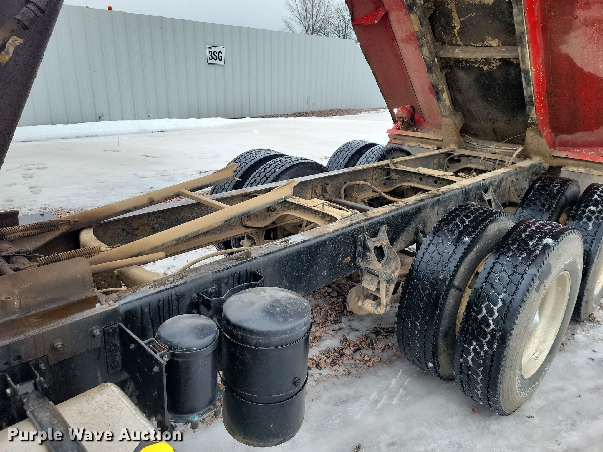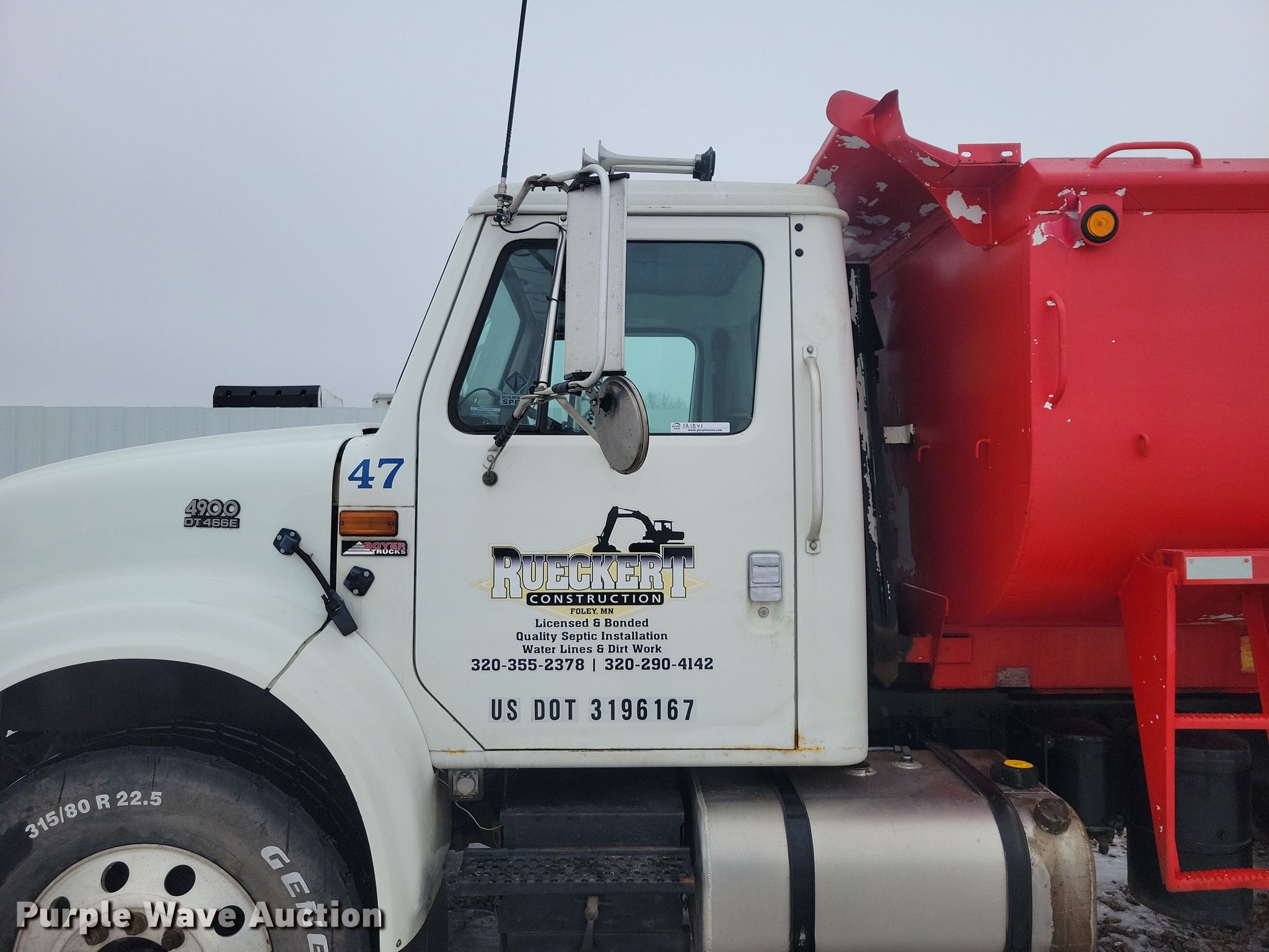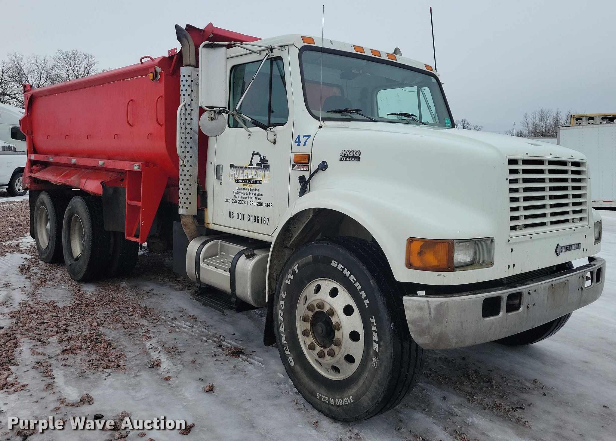 Purple Wave is selling a used Construction Dump Truck in Minnesota. This item is a 2002 International 4900 dump truck with the following: Miles: 548,155 on odometer, Hours: 19,156 on meter, VIN: 1HTSHAAR02H512062, Unit #: 96472285