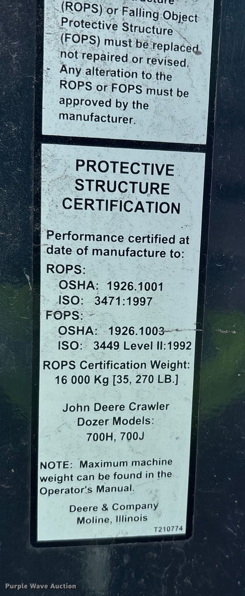 Purple Wave is selling a used Crawler Dozer in Missouri. This item is a 2006 John Deere 700J LGP dozer with the following: Hours: Unknown, Serial: T0700JX132154, Unit #: 72815785