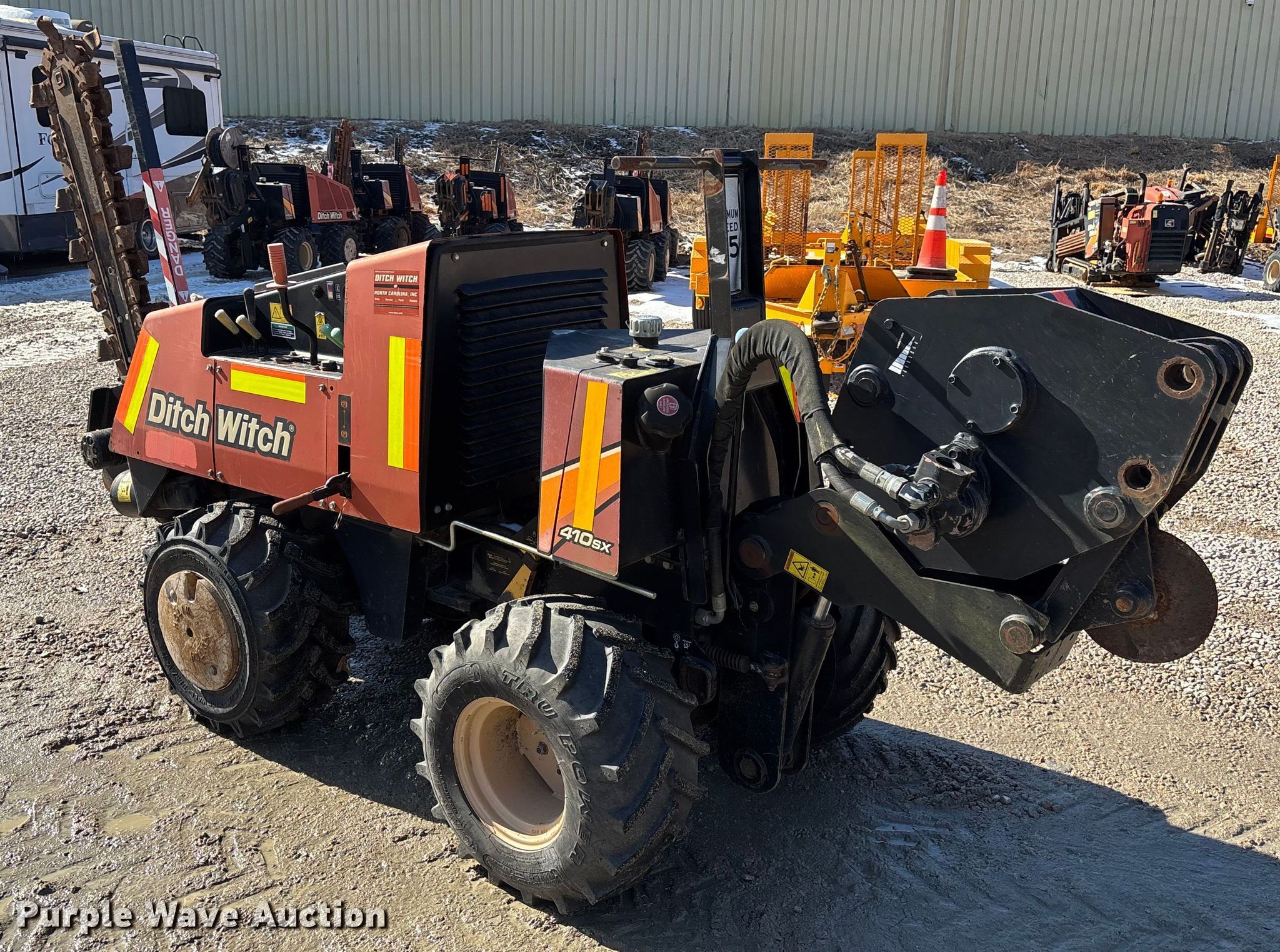 Purple Wave is selling a used Trencher or Rock Saw in North Carolina. This item is a 2015 Ditch Witch 410SX trencher with the following: Hours: Unknown, Serial: CMW410SXLF0001119, Unit #: 62754355