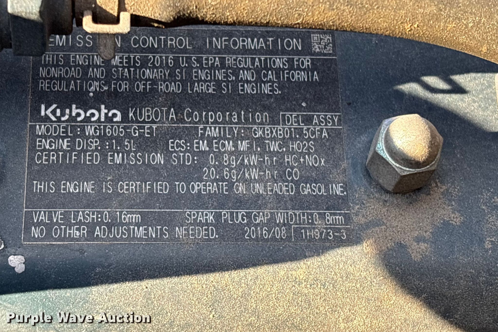 2016 Ditch Witch 410SX trencher. Hours: Unknown, Serial: DWP410SXKH0001614, Unit #: 62746045. Engine Kubota WG1605–G-ET, Displacement: 1.5L, Cylinders: 4, Fuel type: Gas. Transmission Hydrostatic. Chassis Four wheel drive. Features Trencher Model: H400, Estimated dig depth: 38", Cutting width: 5", Teeth: Dirt, Vibratory plow. Tires Size: 26x12.00-12. Notes Possible transmission issues Neutral engagement issues, Plow blade missing, Jump start required during on-site data collection, Key not included, Non-operational hour meter. Fleet inventory reduction, stored at a secured facility. Please review REQUIRED REMOVAL INSTRUCTIONS. Fleet Inventory Reduction. Swansea, SC 29160