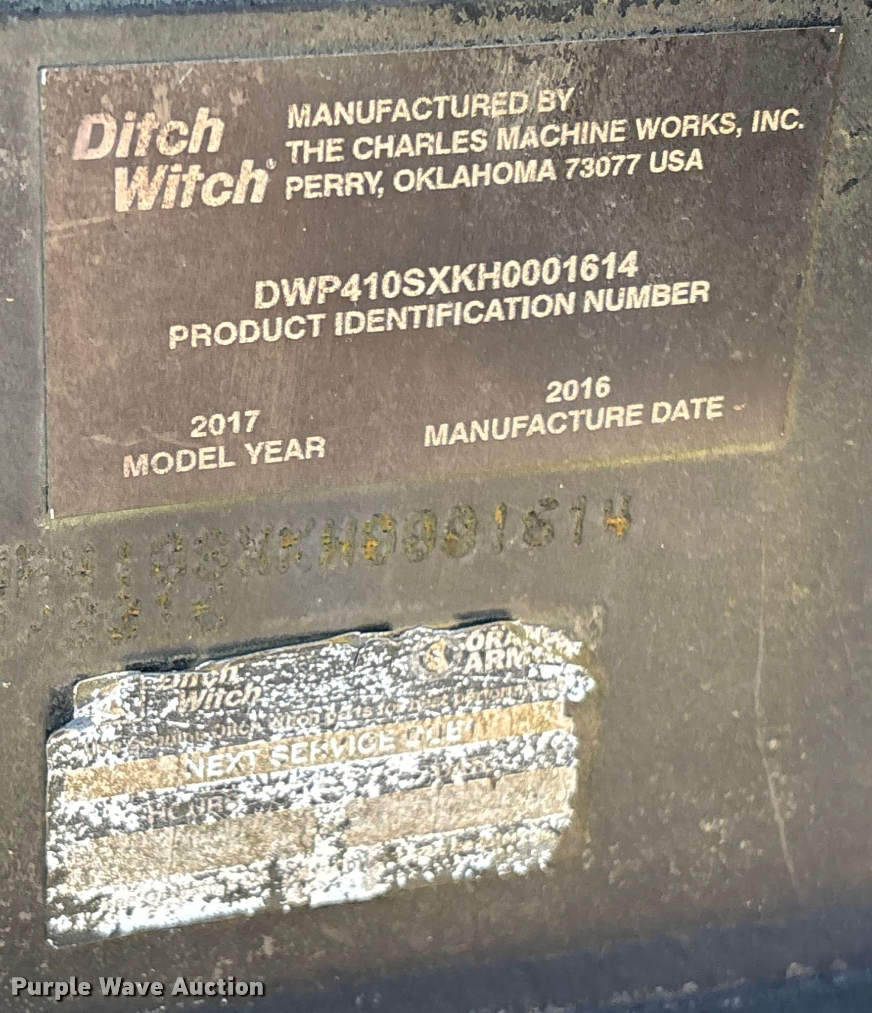 Purple Wave is selling a used Trencher or Rock Saw in South Carolina. This item is a 2016 Ditch Witch 410SX trencher with the following: Hours: Unknown, Serial: DWP410SXKH0001614, Unit #: 62746045