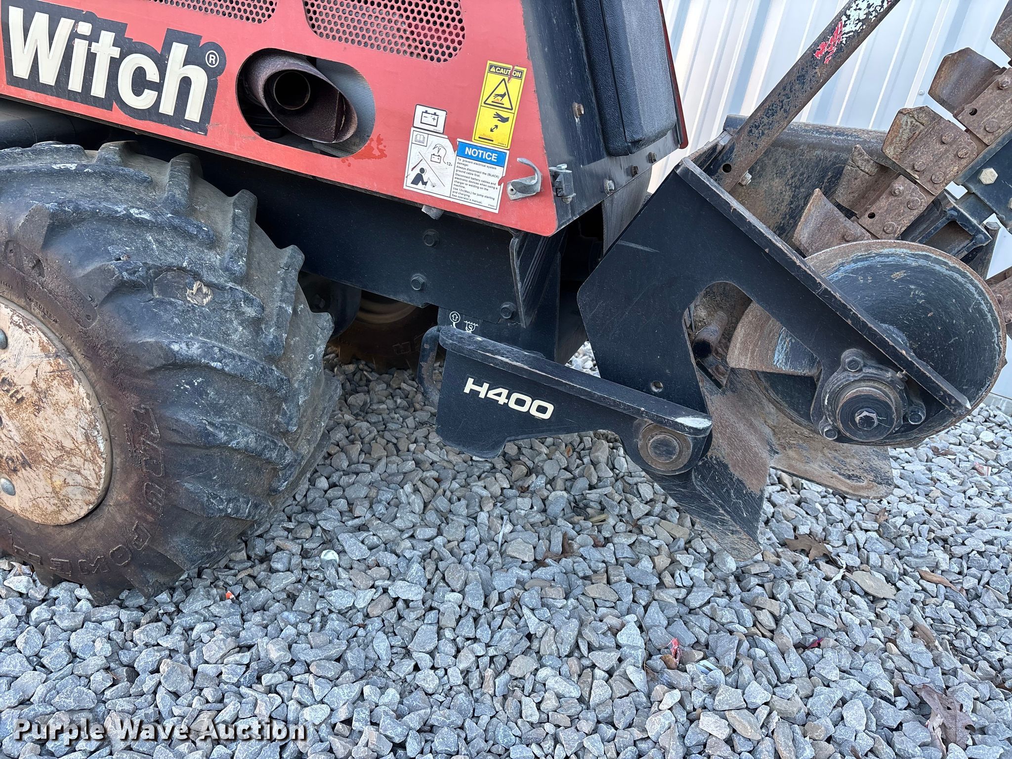 2016 Ditch Witch 410SX trencher. Hours: 1,275 on meter, Serial: CMW410SXPG0001484, Unit #: 68323615. Engine Cylinders: 4, Fuel type: Gas. Transmission Hydrostatic. Chassis Four wheel drive. Features Trencher Model: H400, Estimated dig depth: 42", Cutting width: 5", Teeth: Dirt, Vibratory plow. Tires Size: 26x12.00-12. Notes Plow blade missing. Fleet inventory reduction, stored at a secured facility. Please review REQUIRED REMOVAL INSTRUCTIONS. Fleet Inventory Reduction. Earlington, KY 42410