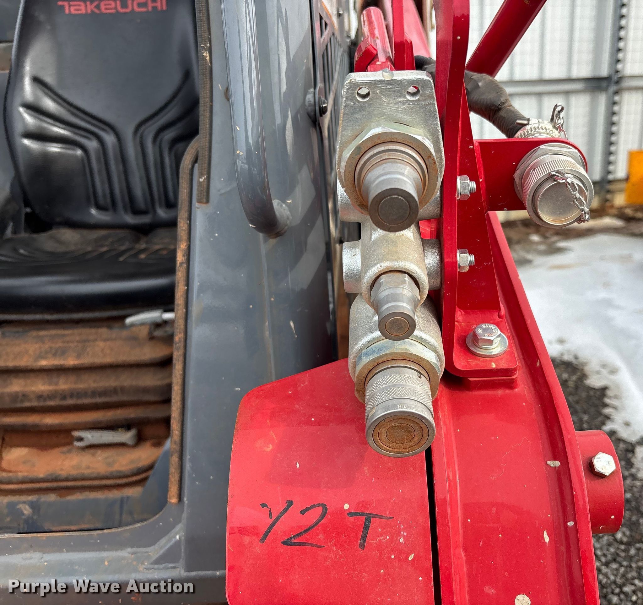 2025 Takeuchi TL8R-2 tracked skid steer loader. Hours: Unknown, Serial: 408011945, Unit #: 72742005. Engine Kubota V3307-CR-T-E, Displacement: 3.3L, Cylinders: 4, Fuel type: Diesel. Transmission Hydrostatic, Two speed travel. Operators station OROPS, Backup camera, Bucket control: Hand, Electronic Monitoring System panel. Features Auxiliary hydraulics, Auxiliary electrical outlet, Quick coupler: Manual, Forks Length: 48". Tracks Width: 15". Notes Possible ignition issues, Vandalism damage, Unknown operating condition. Buyer responsible for all aspects of loadout and removal. Insurance recovery, stored at a secured facility. Please review REQUIRED REMOVAL INSTRUCTIONS. Insurance Recovery. Mocksville, NC 27028