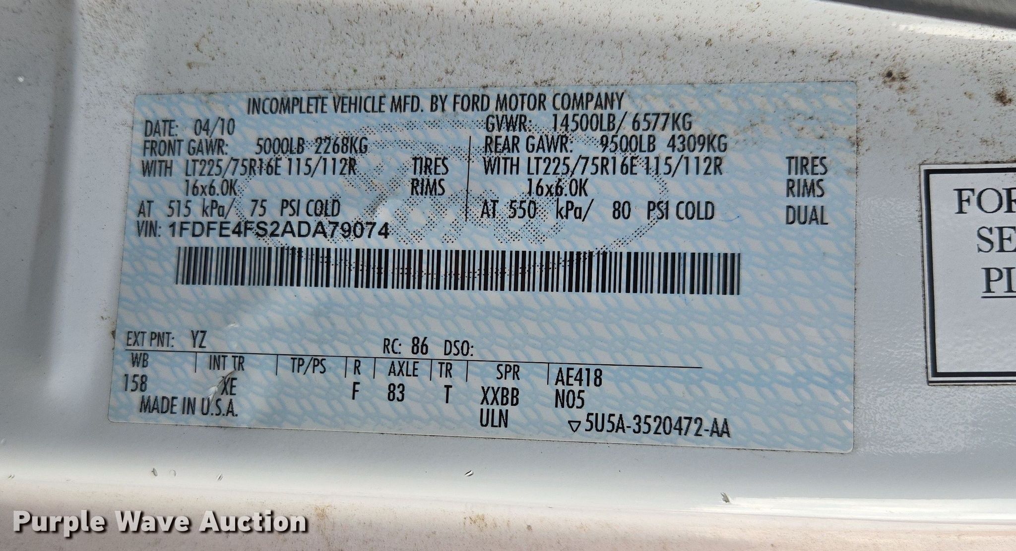 - VIN: 1FDFE4FS2ADA79074