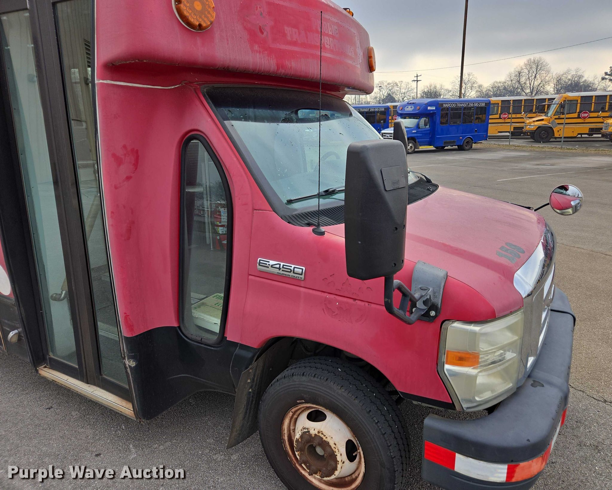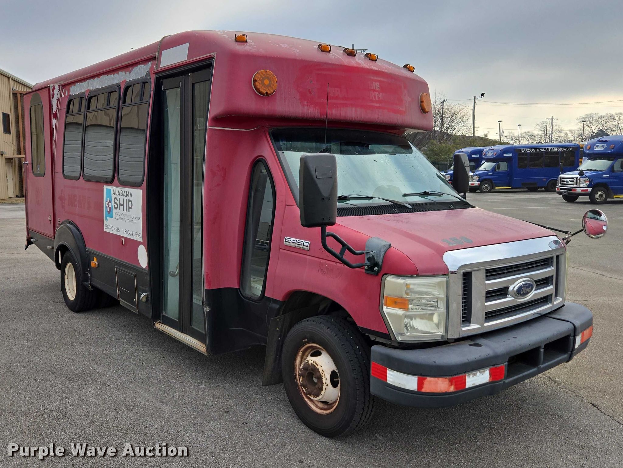 2010 Ford E450 shuttle bus. Miles: 192,557 on odometer, VIN: 1FDFE4FS9ADA79069. Engine Displacement: 6.8L, Cylinders: 10, Fuel type: Gas, HP: 305. Transmission Automatic. Chassis Axles: Single, Suspension: Spring, Brakes: Hydraulic, GVWR: 14,500 lbs. Interior AC, Heat, Cruise control, Passengers: 12, Wheelchair lift. Tires Size: 225/75R16. Alabama title. Title distribution may be delayed up to 30 days from verification of funds. North Central Alabama Regional Council of Governments. Decatur, AL 35601