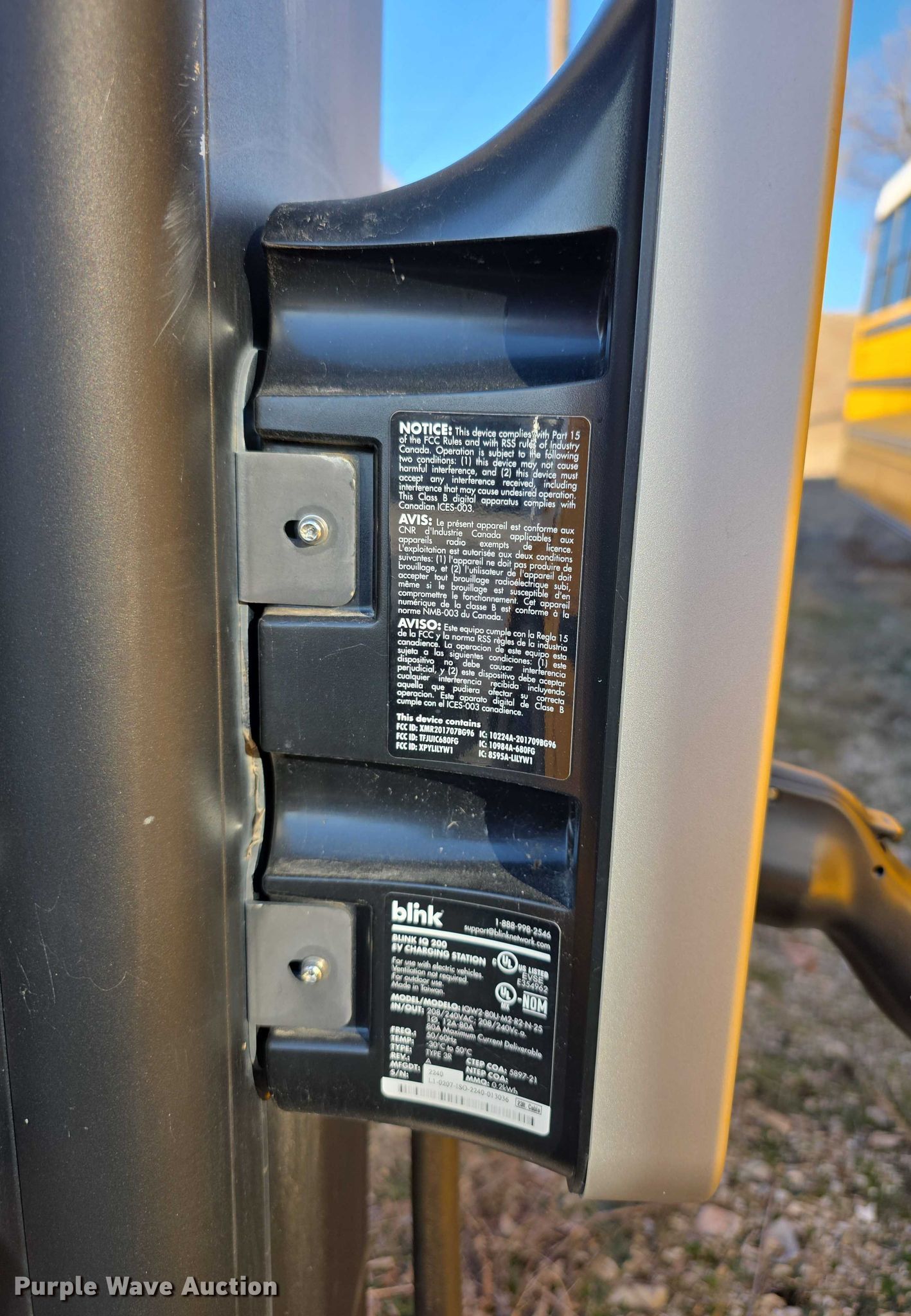 Purple Wave is selling a used Building Materials in Kansas. This item is a Blink Electric IQ 200 EV charging station with the following: Power will be disconnected prior to auction, Unit will be disassembled prior to auction, One charger non-operational, Unknown operating condition