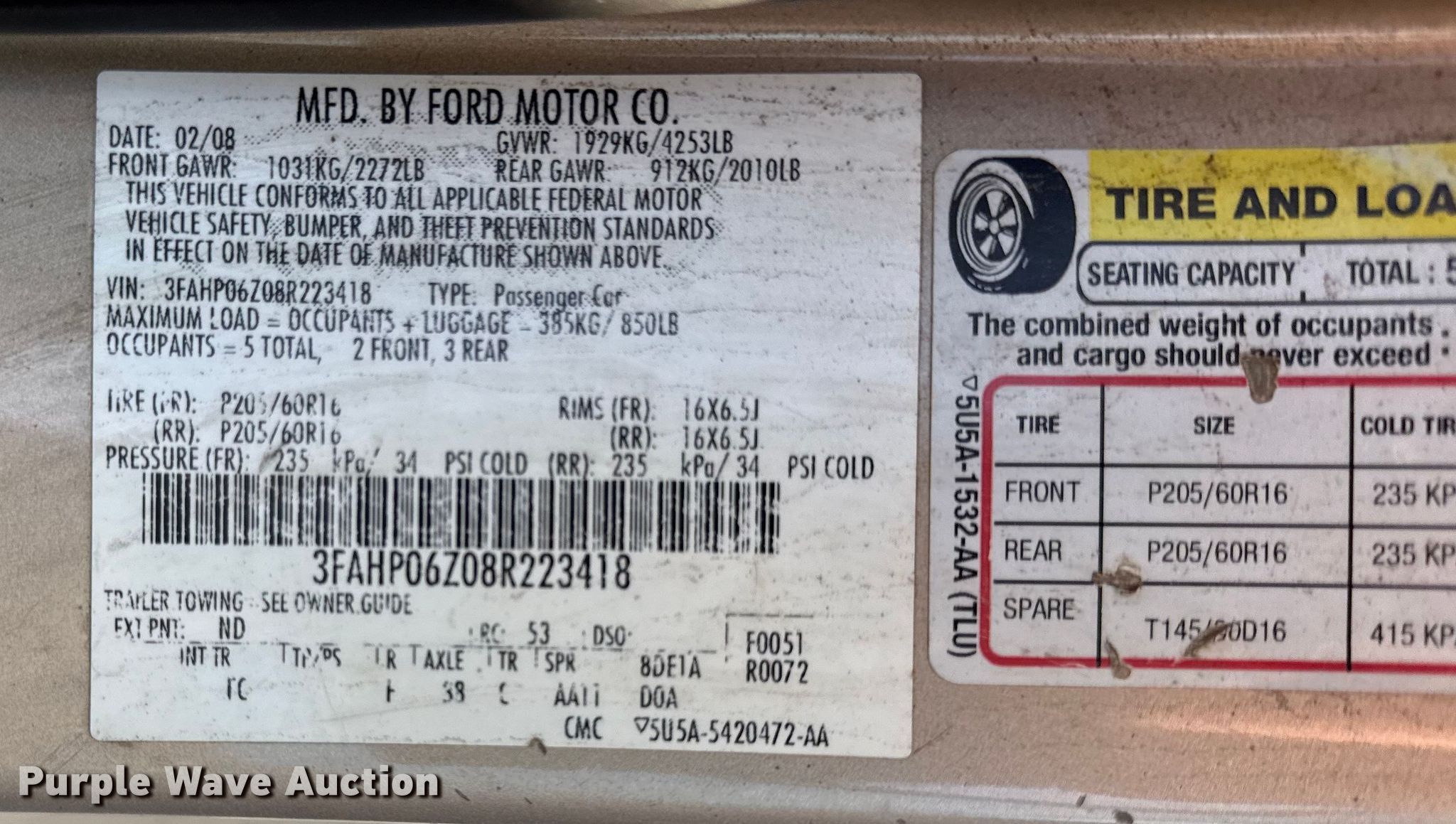 - VIN: 3FAHP06Z08R223418