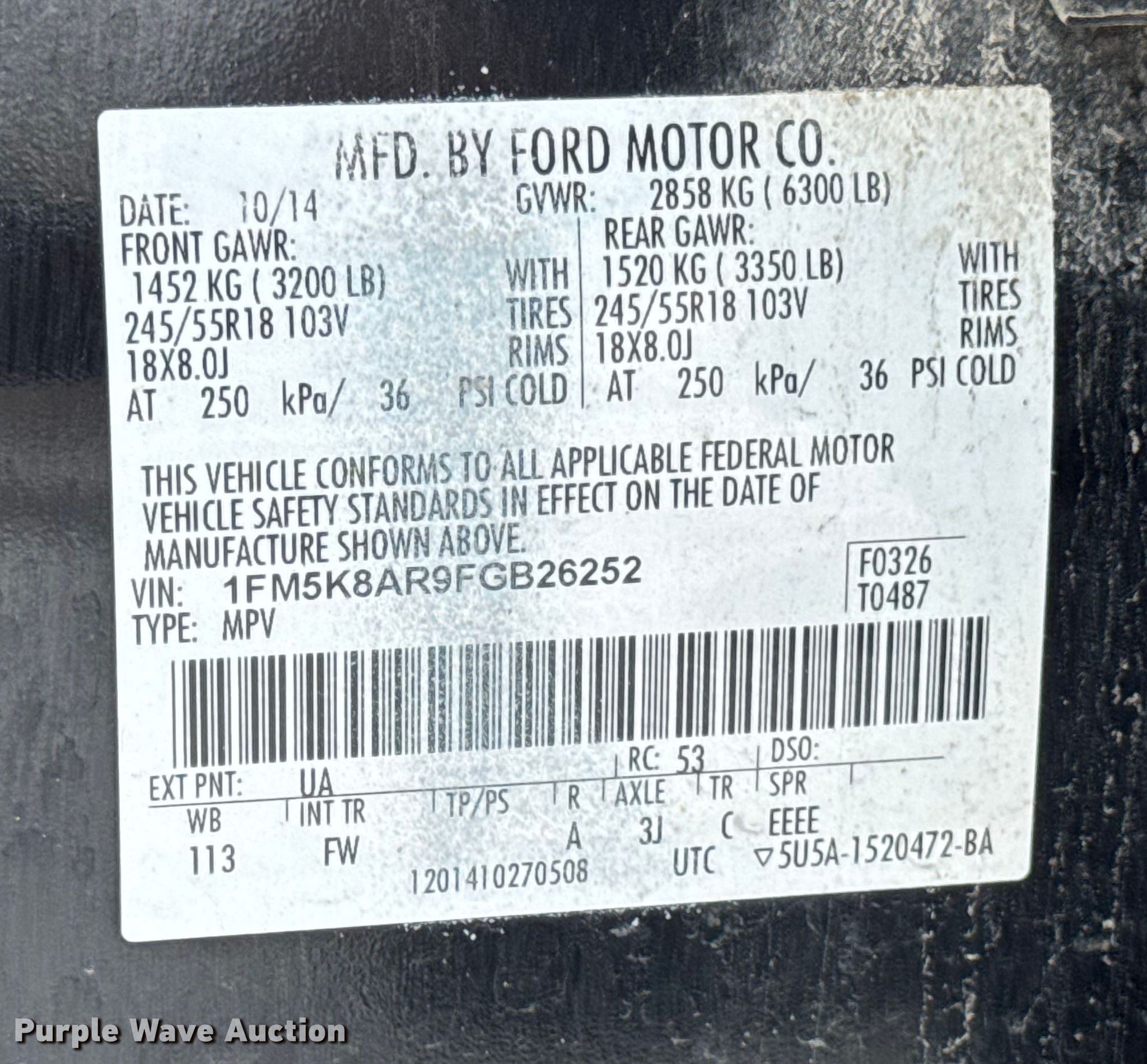 - VIN: 1FM5K8AR9FGB26252