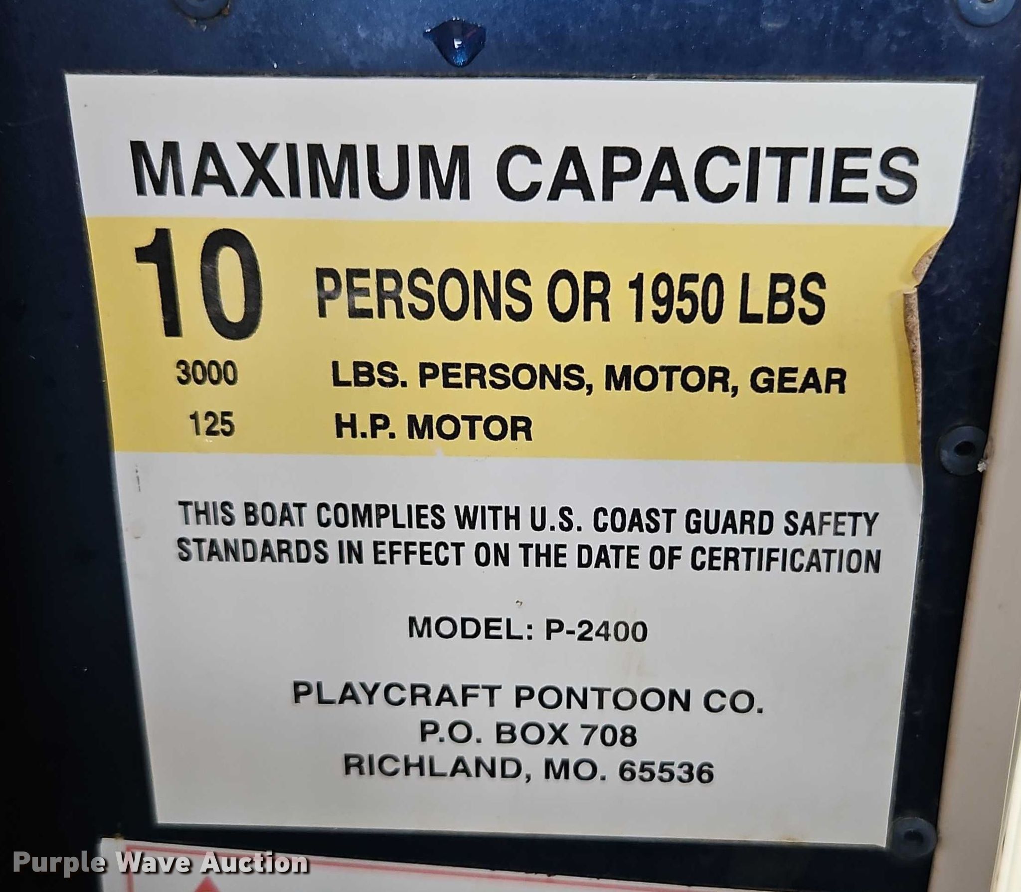 Purple Wave is selling a used Boat in Missouri. This item is a 2020 Playcraft Sport 2400 pontoon boat with the following: Length: 24', Hull ID: PLF97695F020, Unit #: 16