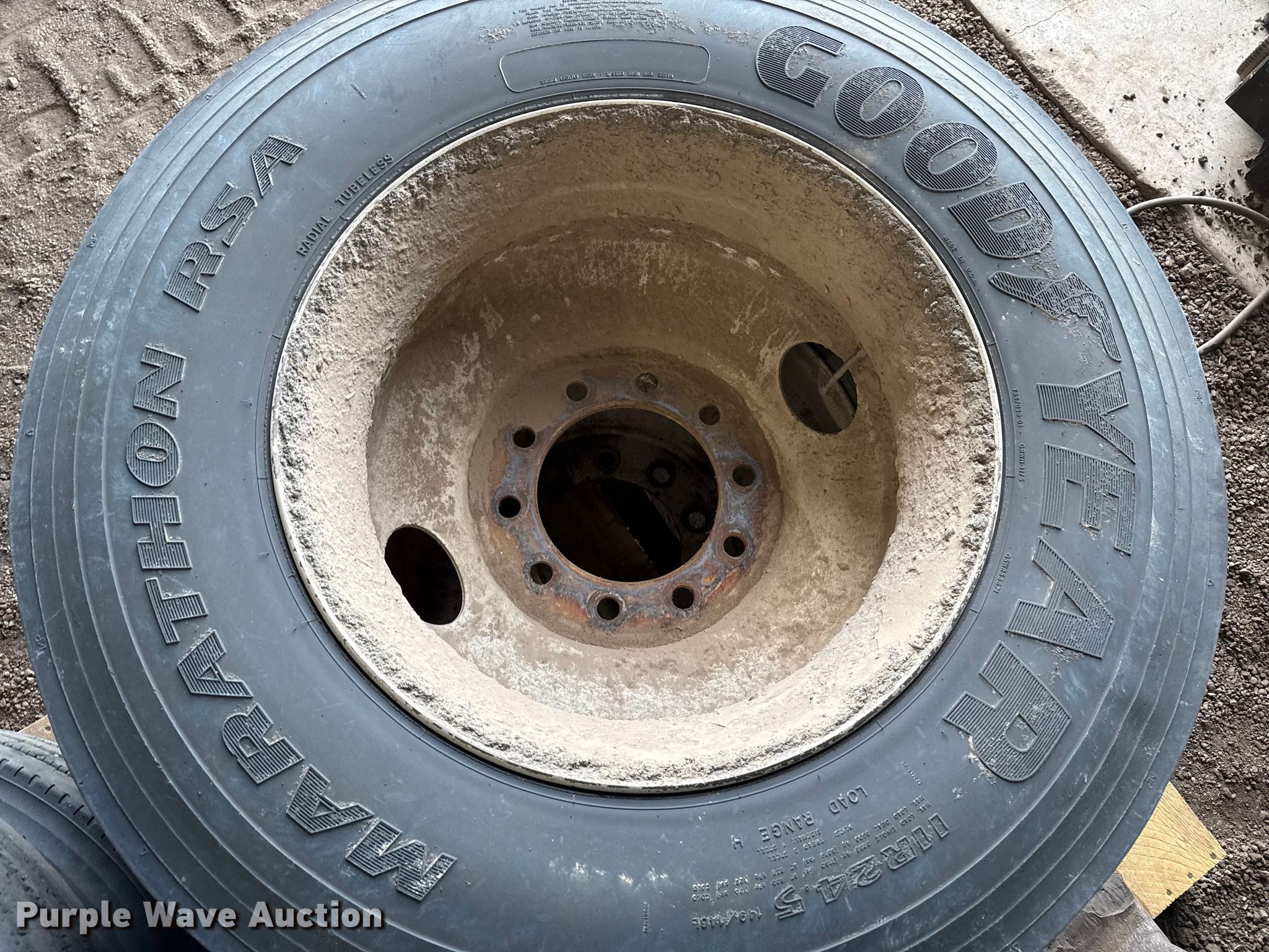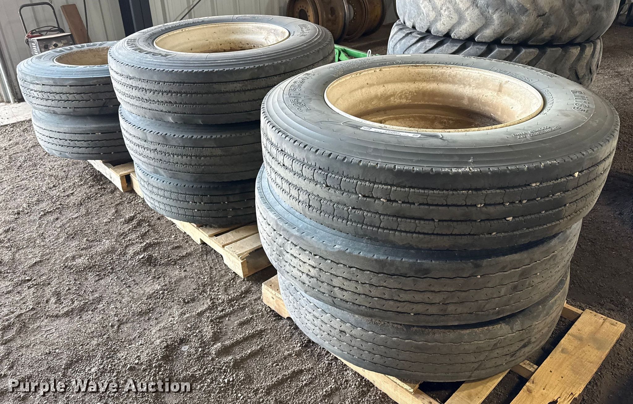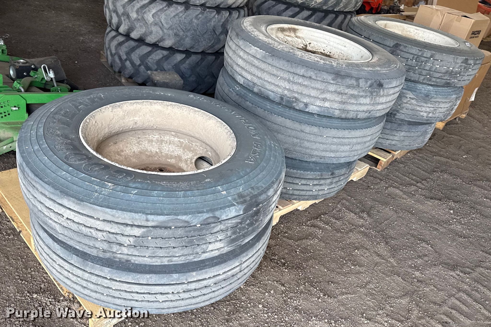 Purple Wave is selling a used Fleet Tires in Kansas. This item is a (8) tires and wheels with the following: Size: 11R24.5