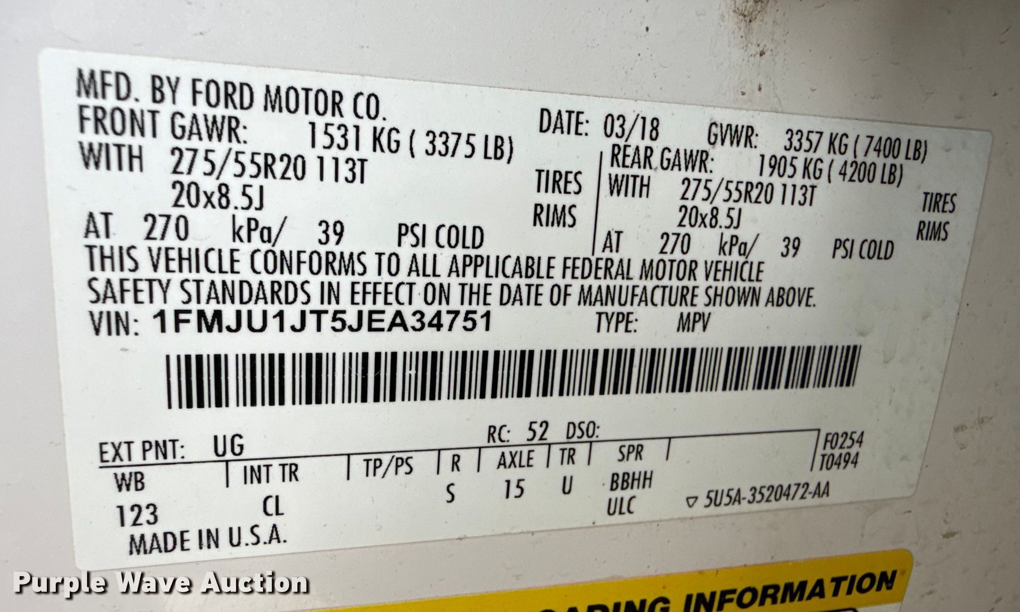 - VIN: 1FMJU1JT5JEA34751