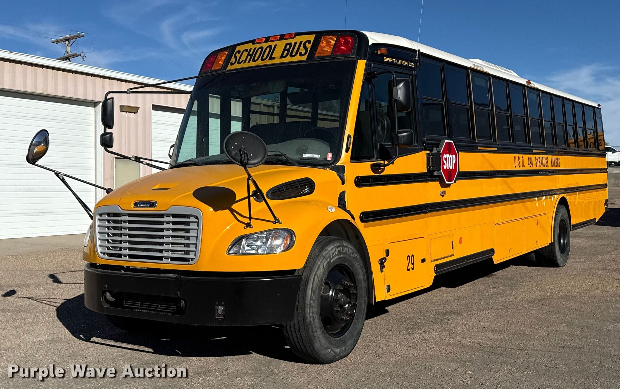 2012 Thomas Built school bus. Miles: 244,984 on odometer, Hours: 8,608 on meter, VIN: 4UZABRDT4CCBH5971. Engine Cummins, Displacement: 6.7L, Cylinders: 6, Fuel type: Diesel. Transmission Automatic. Chassis Axles: Single, Suspension: Spring, Brakes: Air, GVWR: 33,000 lbs. Interior AC, Heat, Heated mirrors, Cruise control. Tires Size: 11R22.5. Notes Dash warning indicator: Check engine. Kansas title. Title distribution may be delayed up to 14 days from verification of funds. USD 494. Syracuse, KS 67878