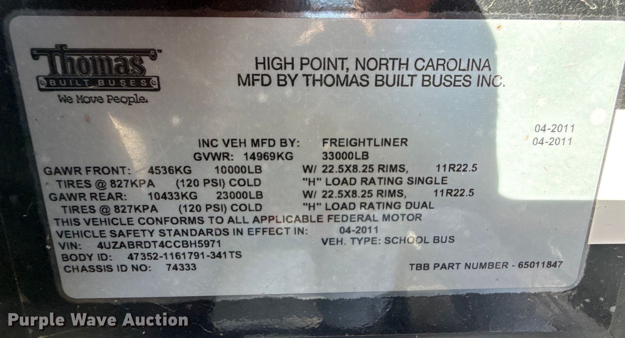 Purple Wave is selling a used Bus in Kansas. This item is a 2012 Thomas Built school bus with the following: Miles: 244,984 on odometer, Hours: 8,608 on meter, VIN: 4UZABRDT4CCBH5971