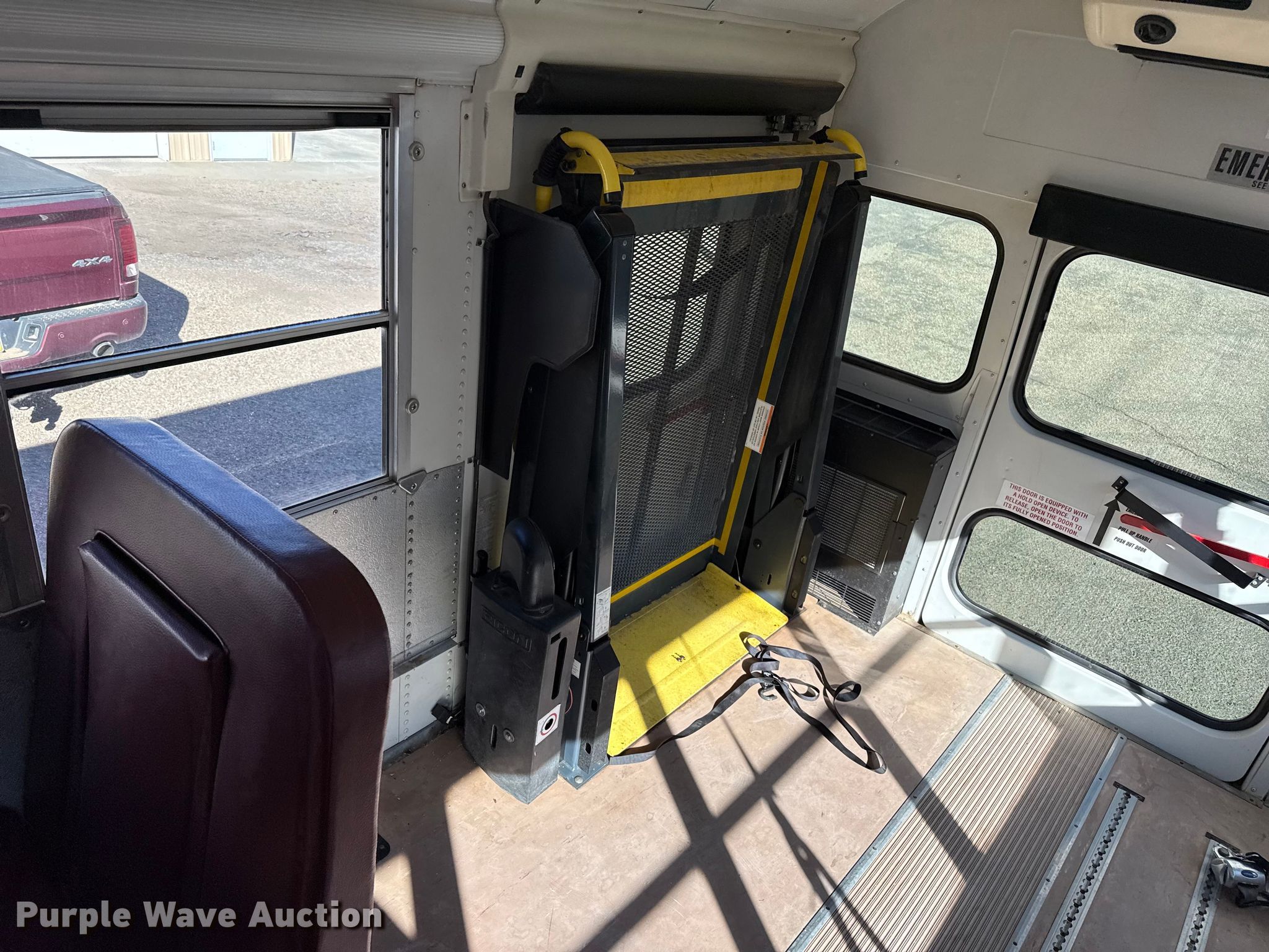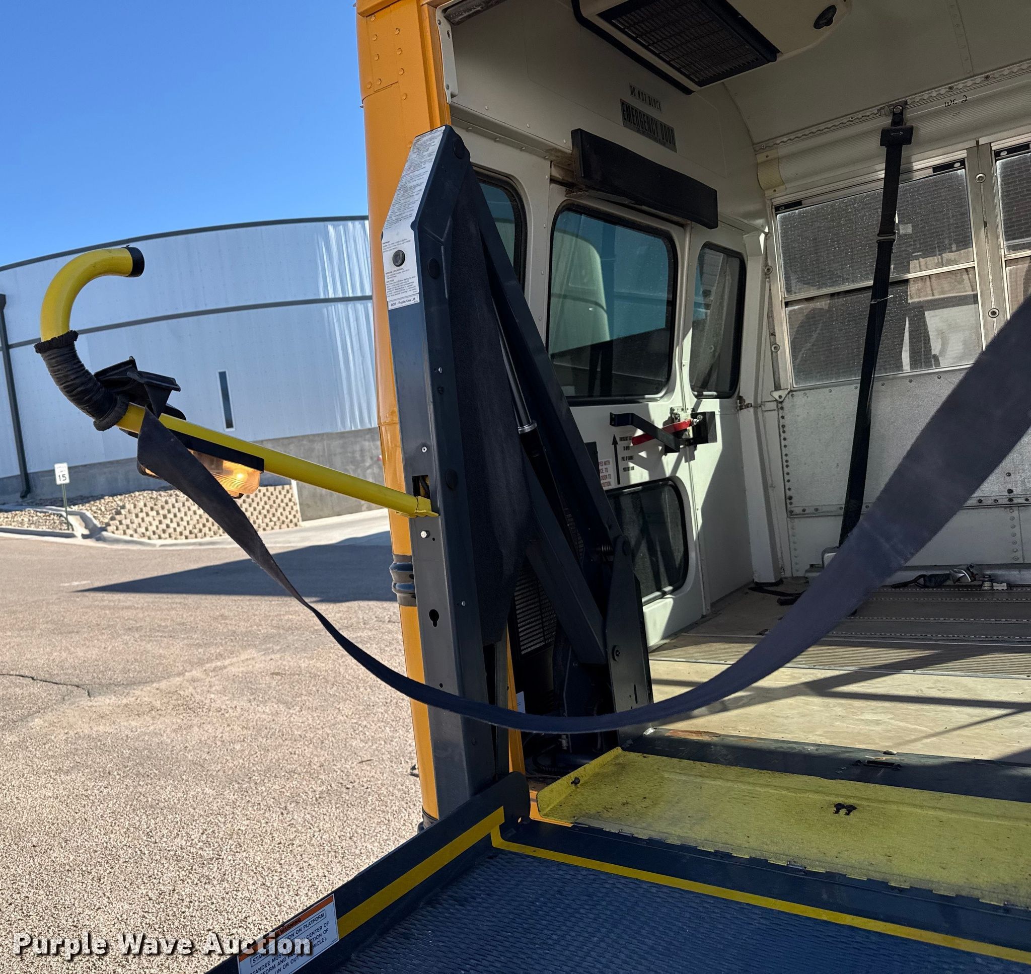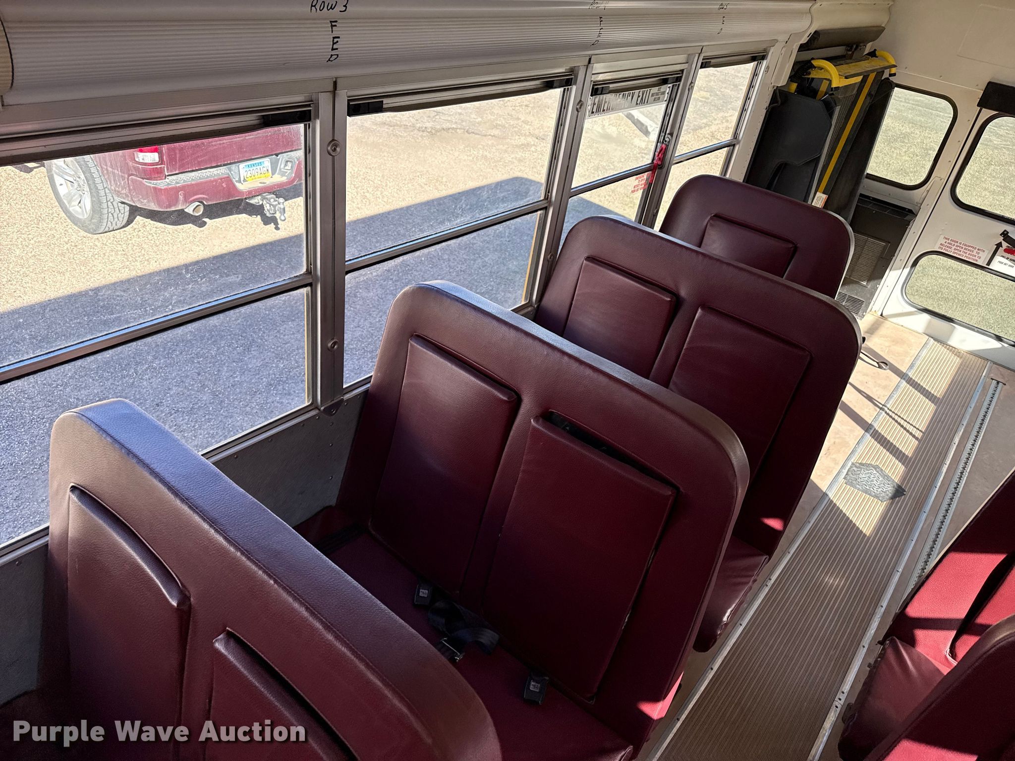 2015 Blue Bird school bus. Miles: 144,762 on odometer, Hours: 5,261 on meter, VIN: 1BAKBCPHXFF308146. Engine Cummins, Displacement: 6.7L, Cylinders: 6, Fuel type: Diesel. Transmission Automatic. Chassis Axles: Single, Suspension: Air, Brakes: Hydraulic, GVWR: 28,780 lbs. Interior AC, Heat, Heated mirrors, Cruise control, Passengers: 28, Wheelchair lift. Tires Size: 255/70R22.5. Notes Dash warning indicator: Check engine, ABS. Kansas title. Title distribution may be delayed up to 14 days from verification of funds. USD 494. Syracuse, KS 67878