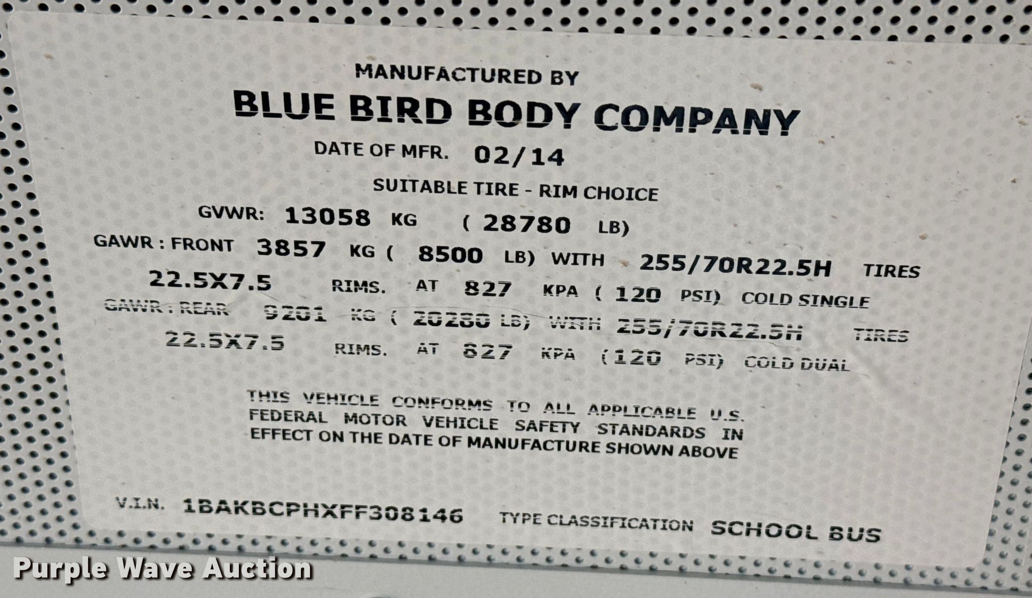 Take a look at this used 2015 Blue Bird school bus being sold on March 3rd, 2026 in the Tuesday March 03 Government Auction made by Blue Bird. Take a look at all of the item information below or take a look at similar auctions for Transit Vehicles.