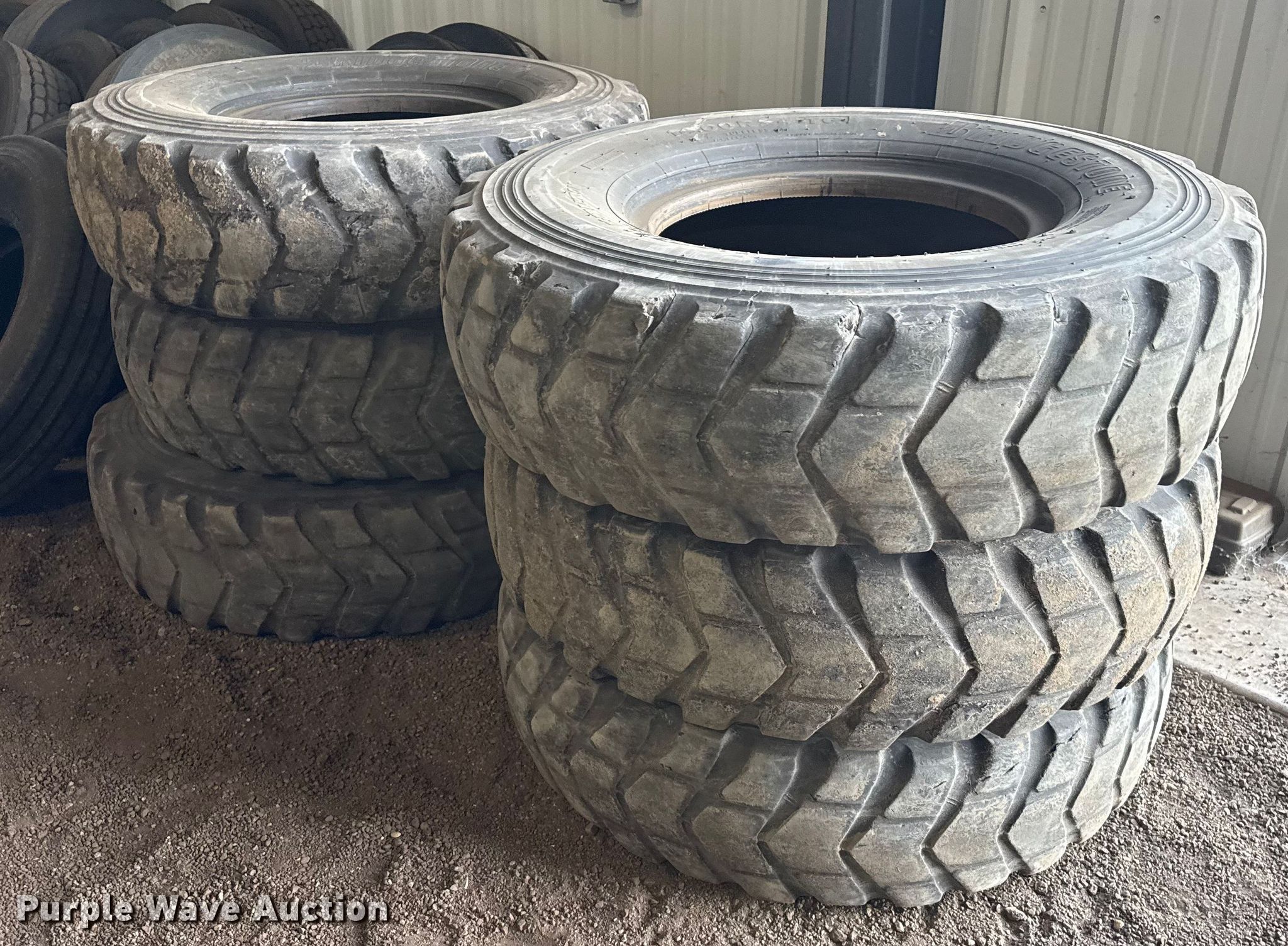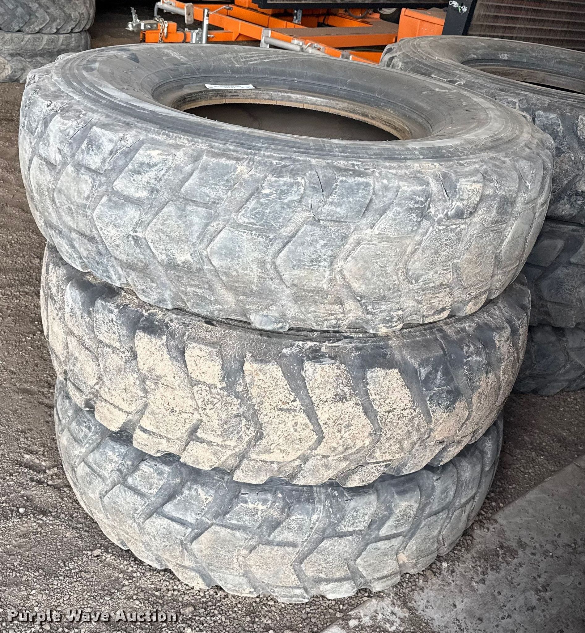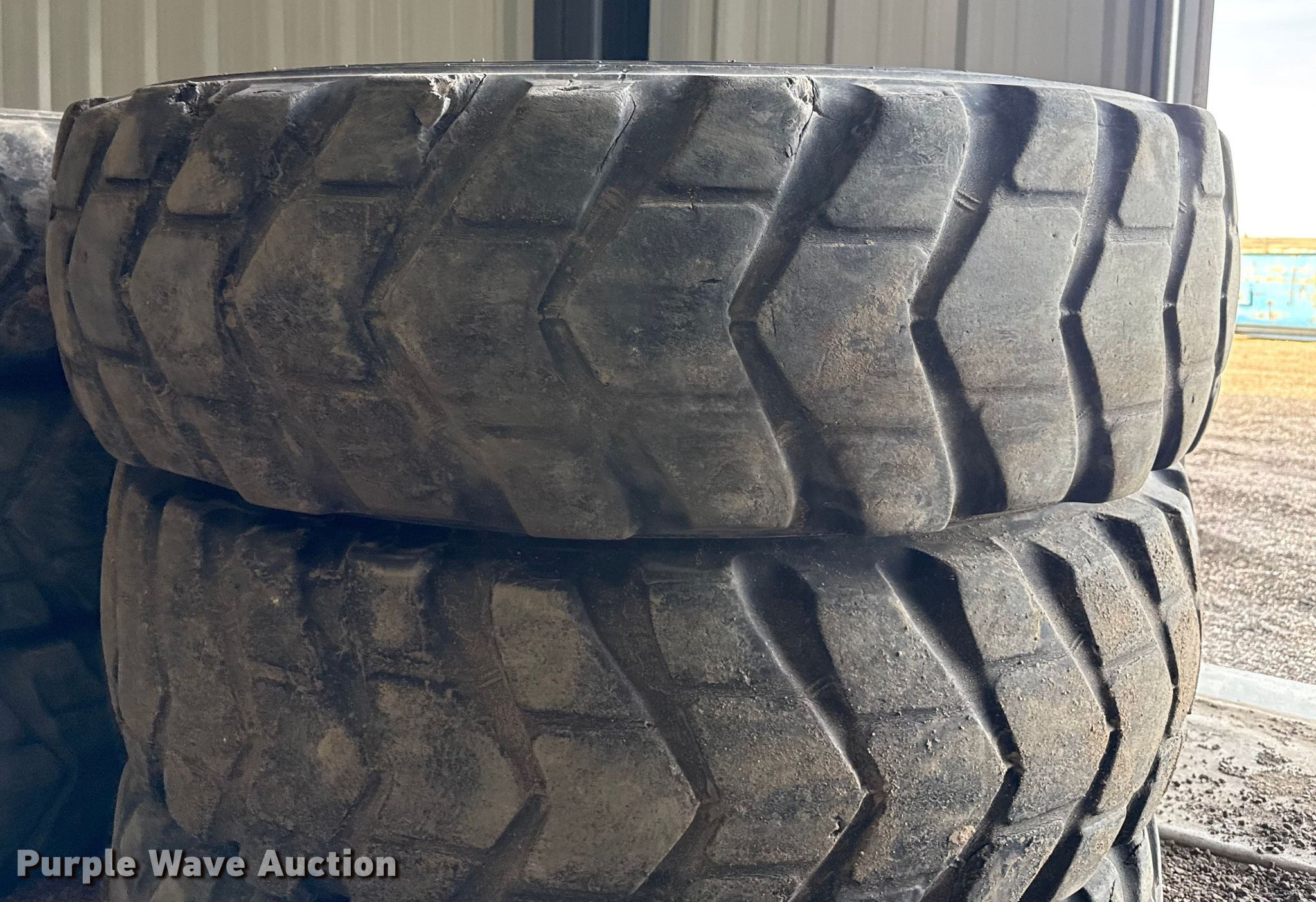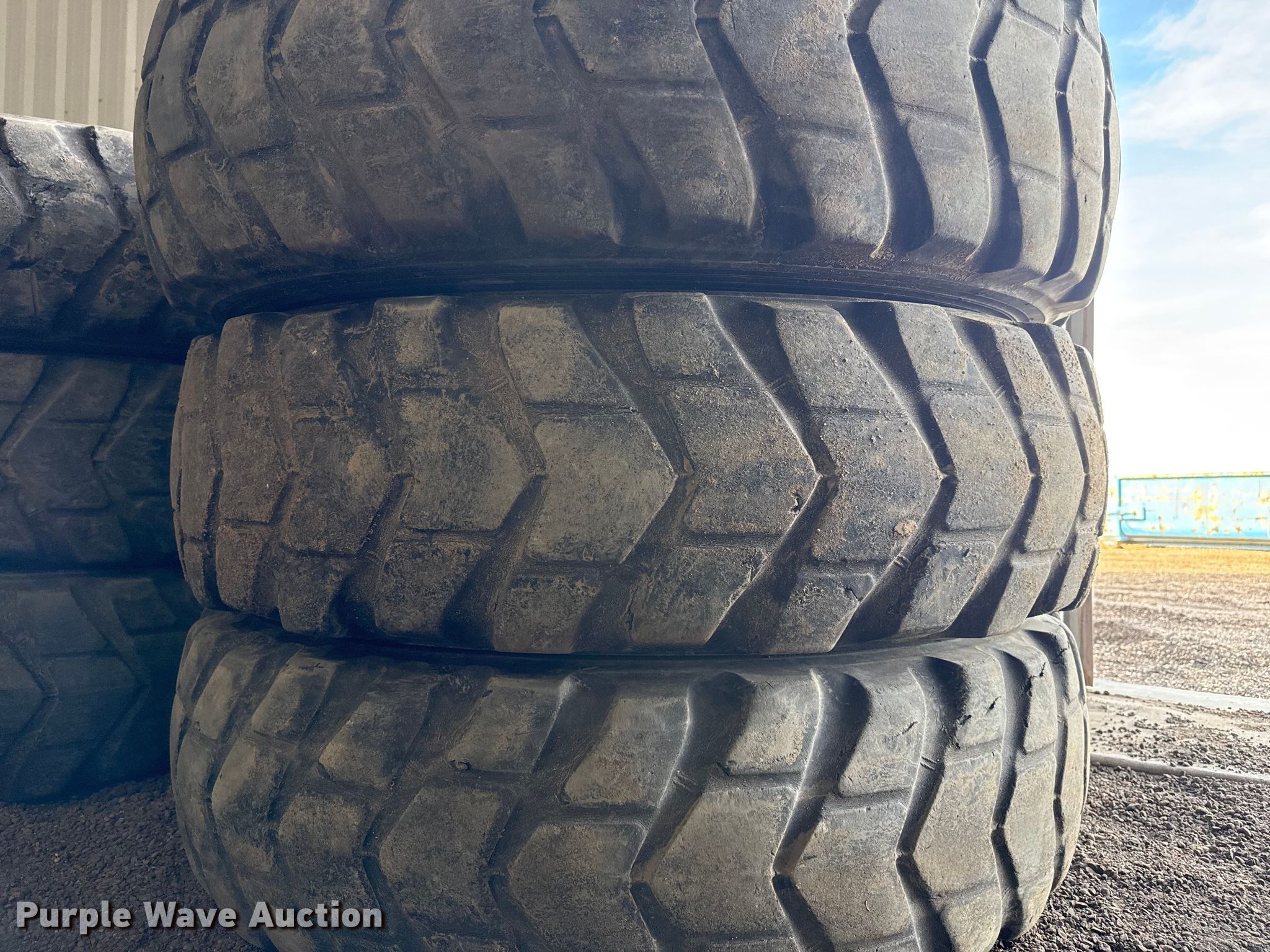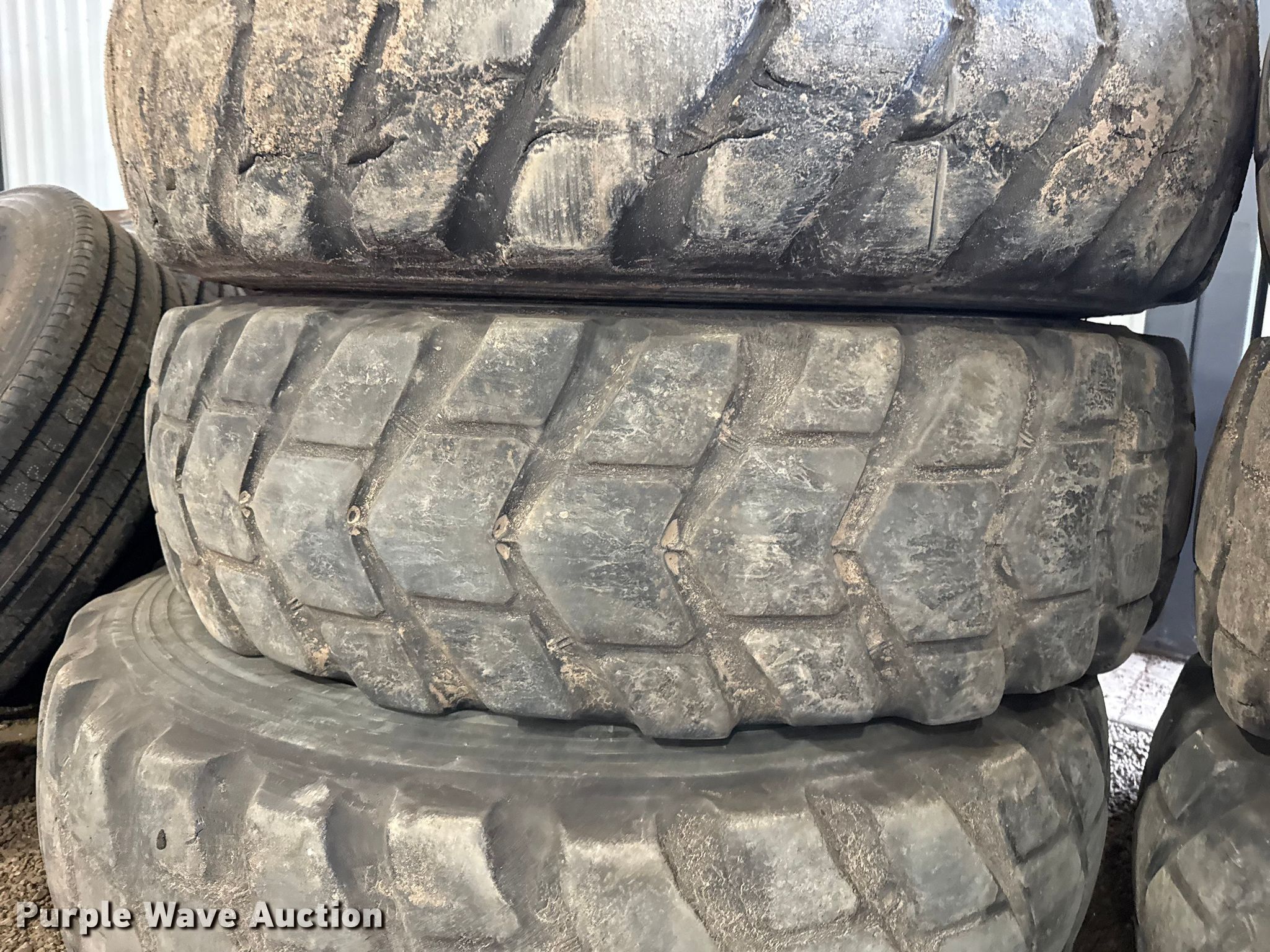 Purple Wave is selling a used Industrial Tires or Tracks in Kansas. This item is a (6) motor grader tires with the following: Size: 14.00R24