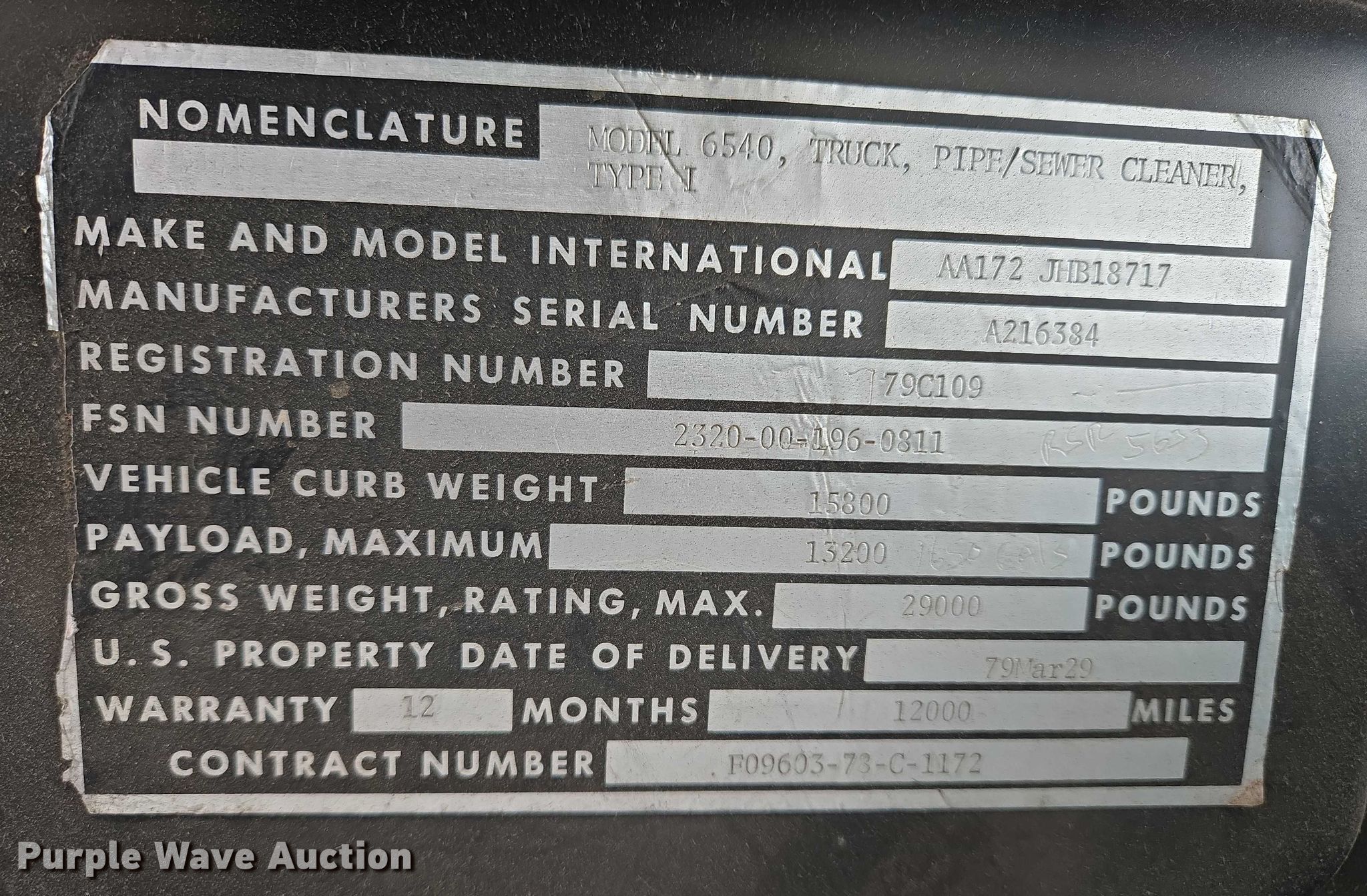 Purple Wave is selling a used Vacuum Truck in South Dakota. This item is a 1979 International 1724 sewer jetter truck with the following: Miles: 78,239 on odometer, Hours: 3,000 on meter, Hours: 415 on second meter, VIN: AA172JHB18717