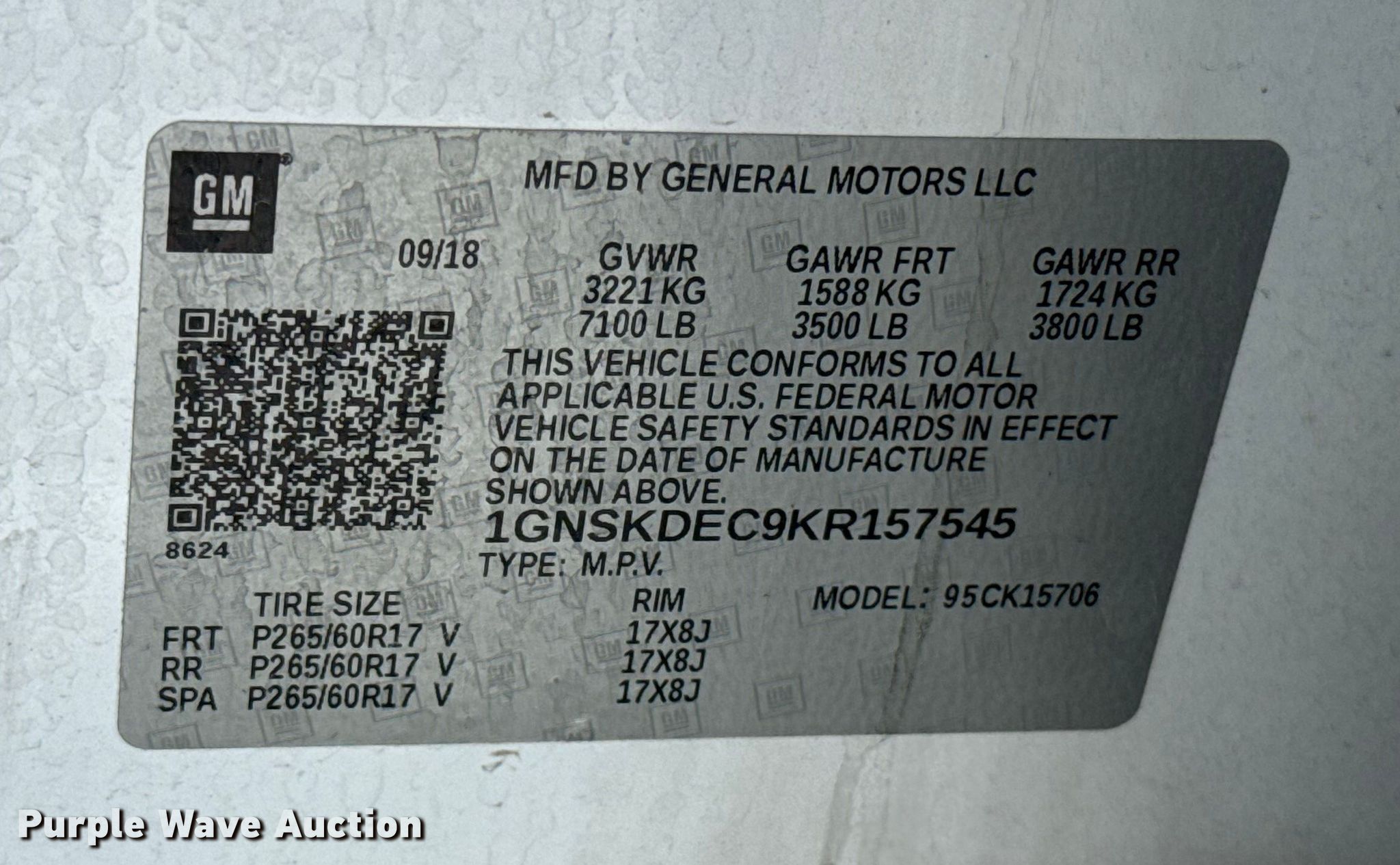- VIN: 1GNSKDEC9KR157545