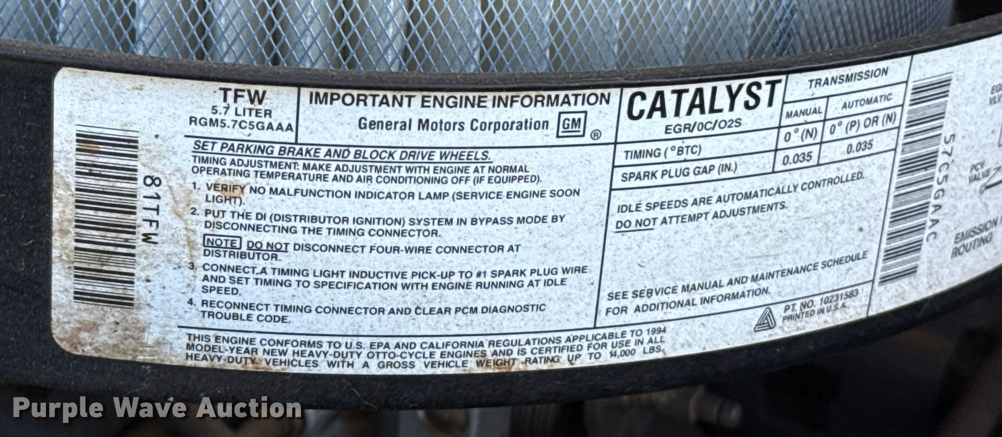 Purple Wave is selling a used 3/4 or 1 Ton Pickup or Van in Oklahoma. This item is a 1994 Chevrolet 2500 Ext. Cab pickup truck with the following: Miles: 59,857 on odometer, VIN: 1GCGC29K5RE218456, Unit #: 702