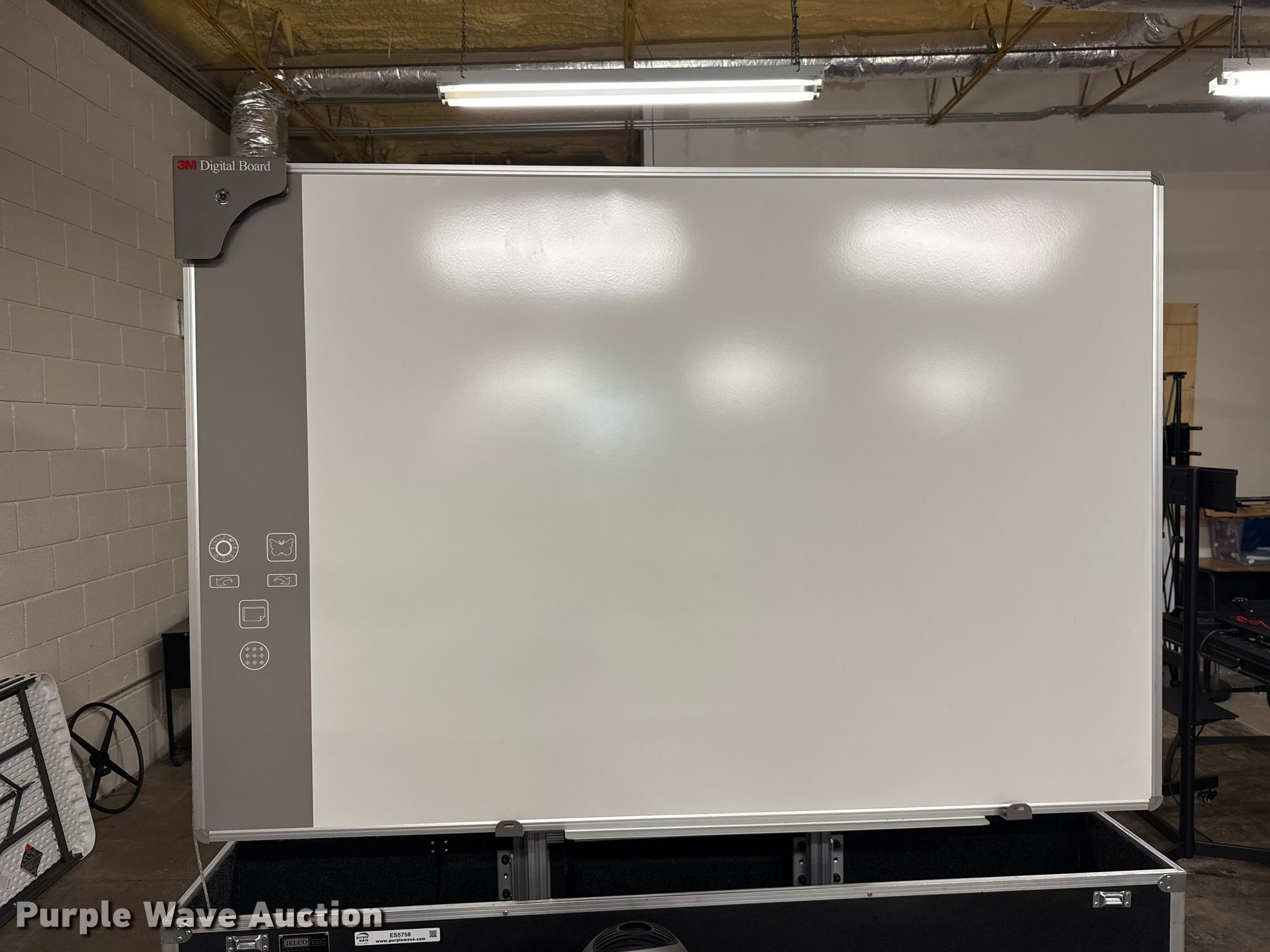 Purple Wave is selling a used Electronics in Oklahoma. This item is a 3M DMS 800 smart board with the following: Dimensions: 6' x 4', Jelco portable case included