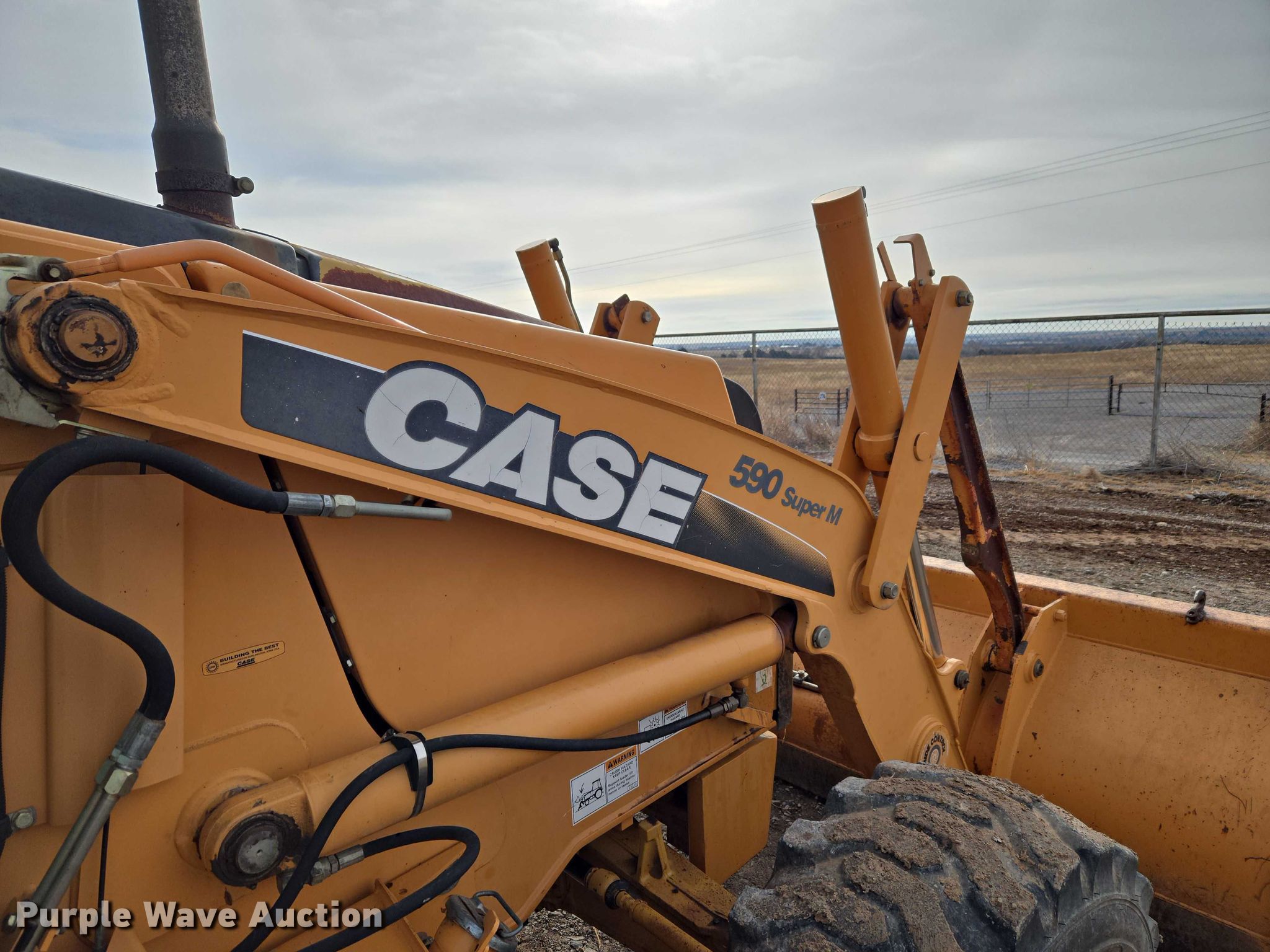 2008 Case 590 Super M Series 3 backhoe. Hours: 2,699 on meter, Serial: N8C508600. Engine CNH 445TA/EGG, Serial: 0524976, Cylinders: 4, Fuel type: Diesel. Transmission Shuttle shift, 4F - 4R. Chassis Four wheel drive, Differential lock. Operators station Enclosed cab, Heat, Backhoe controls: Four stick. Features Loader Bucket Width: 94", Cutting edge: Bolt-on, Backhoe Extendable stick, Thumb: Manual, Bucket Width: 24", Teeth: 5.. Tires Front: 14-17.5, Rear: 21L-24. Custer County - District 2. Weatherford, OK 73096