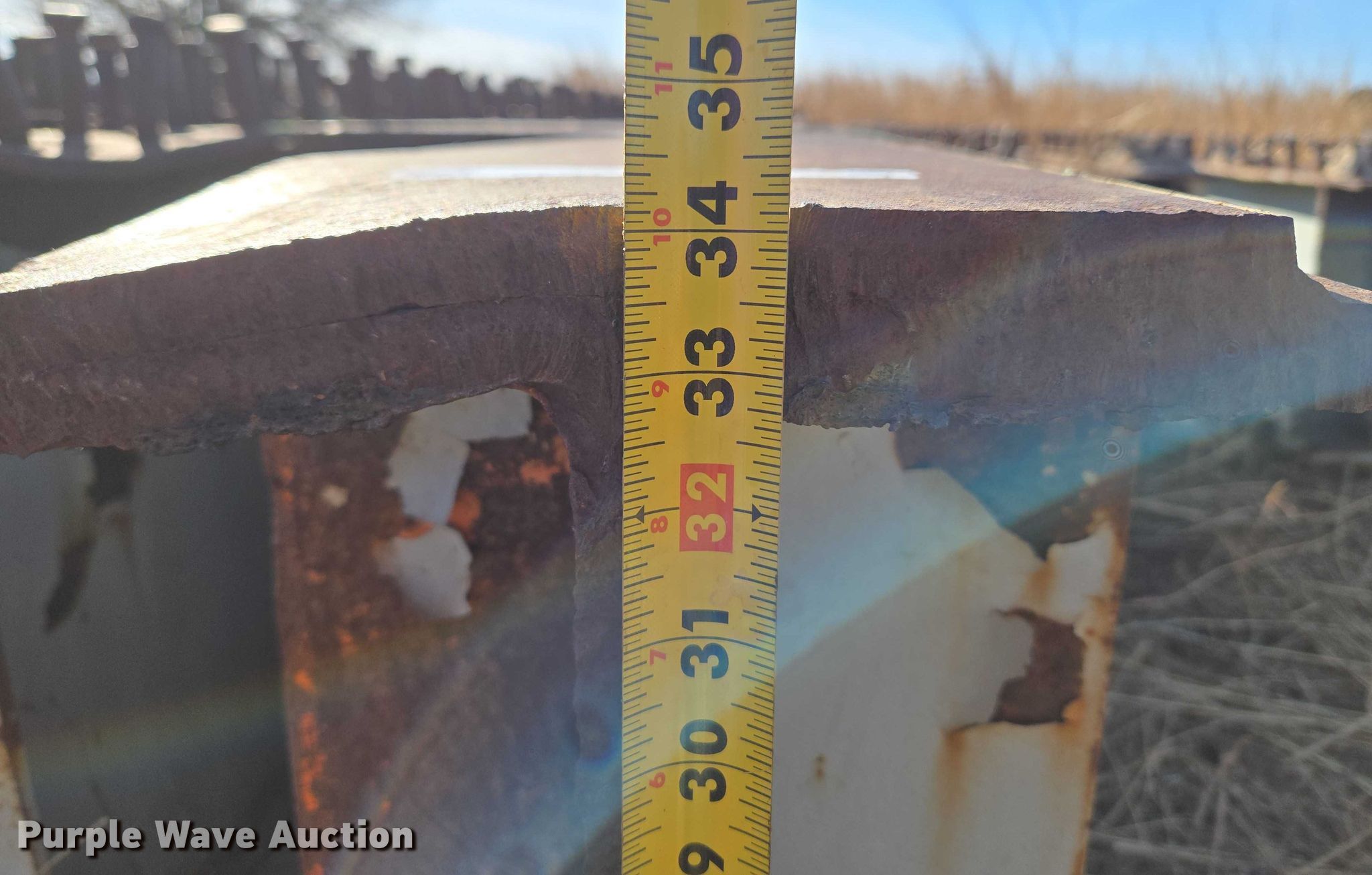 Purple Wave is selling a used Building Materials in Oklahoma. This item is a Approximately 13 bridge beams with the following: Various lengths, 11.5" W x 34" H, 10.5" W x 30" H