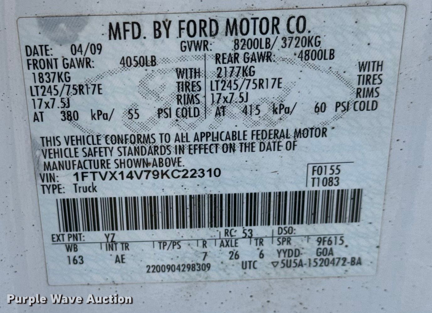 2009 Ford F150 XL Ext. Cab pickup truck. Miles: 168,047 on odometer, VIN: 1FTVX14V79KC22310. Engine Displacement: 5.4L, Cylinders: 8. Transmission Automatic, Four wheel drive. Interior AC, Heat, Cruise control. Tires Size: 245/75R17. Notes Dash warning indicator: TPMS, Windshield chipped or cracked. Kansas title. Title distribution may be delayed up to 14 days from verification of funds. Rose Hill, KS 67133