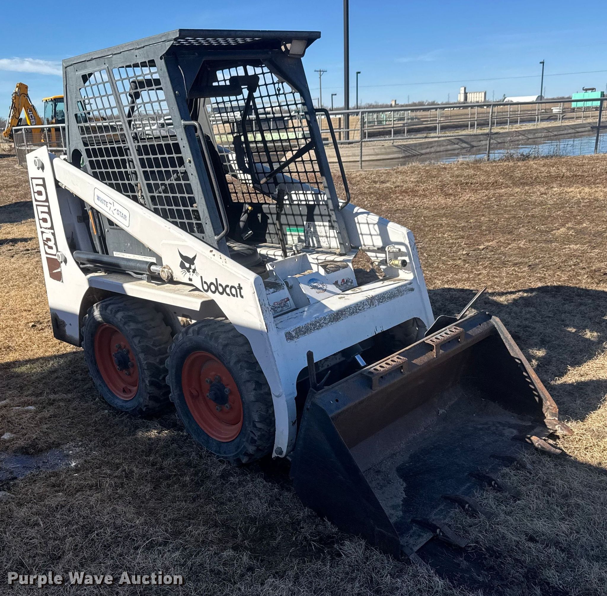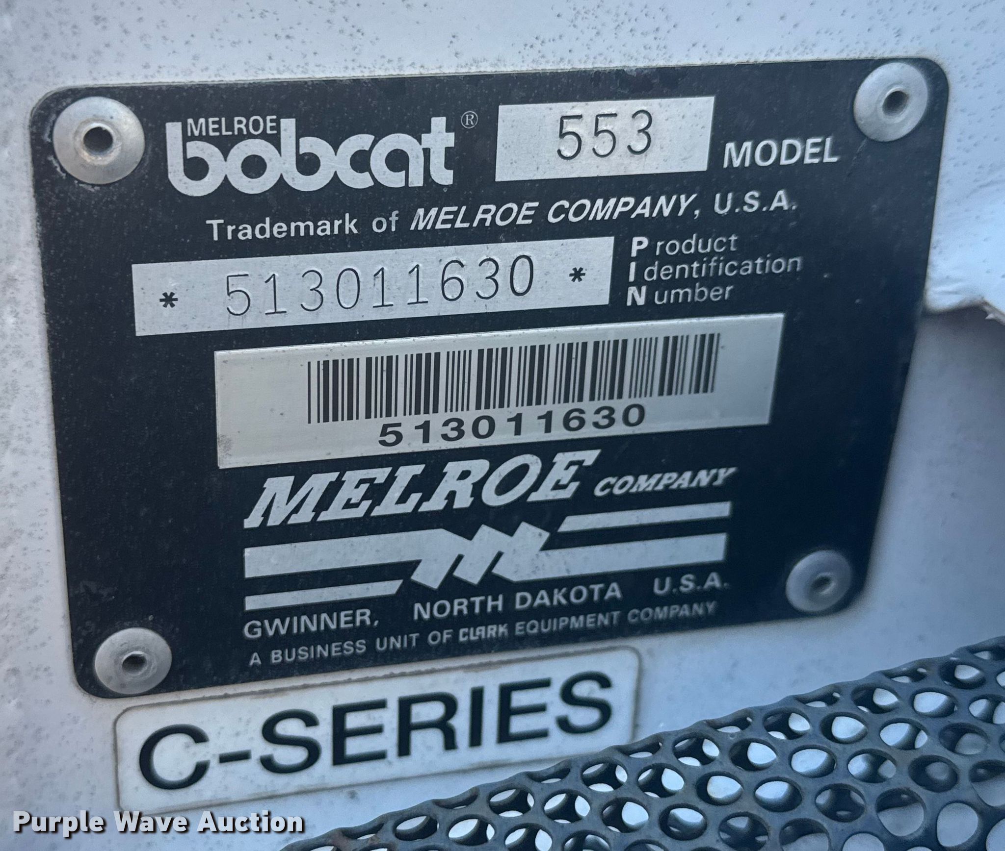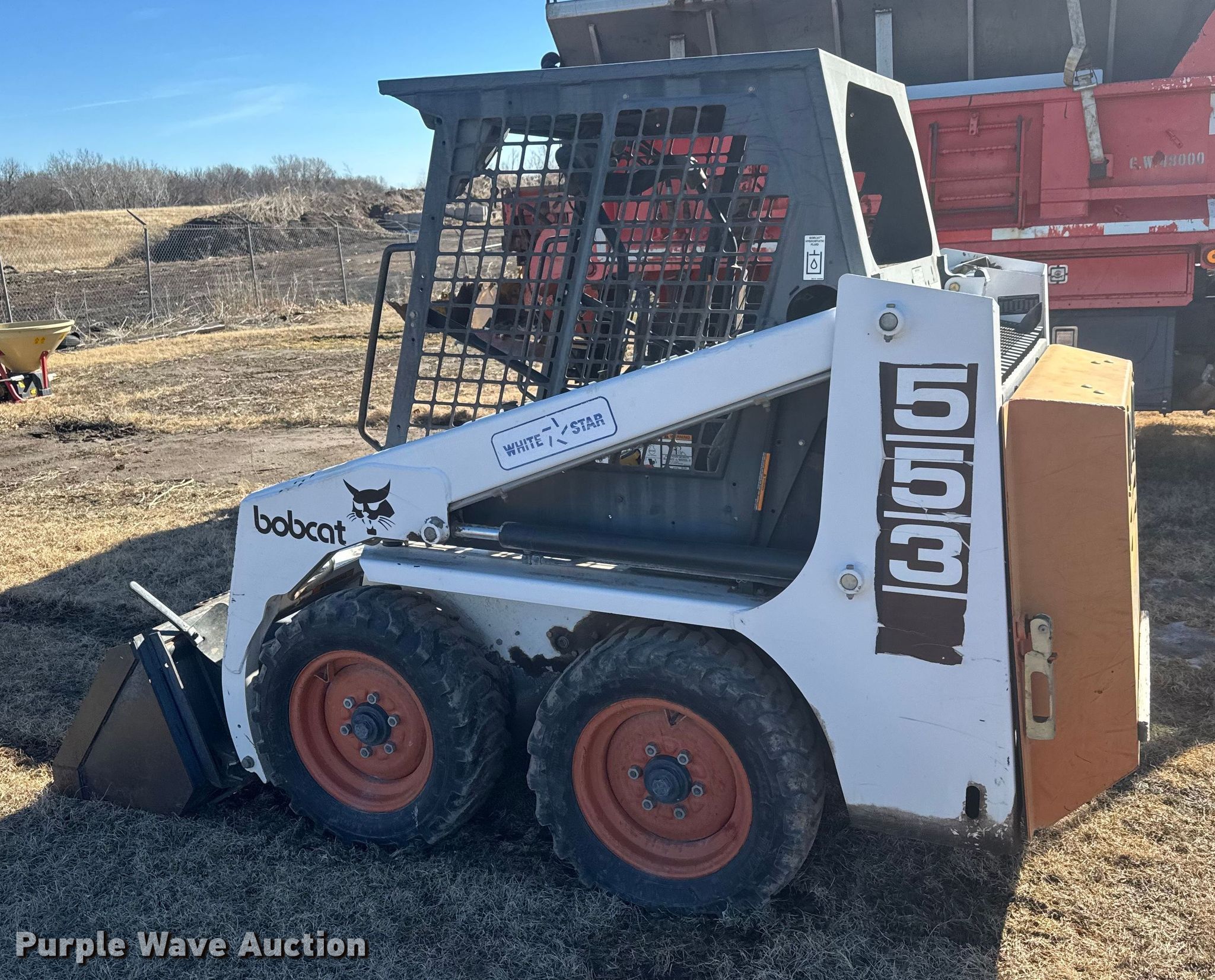 Purple Wave is selling a used Skid Steer Loader in Kansas. This item is a 1995 Bobcat 553 skid steer loader with the following: Hours: 641 on meter, Serial: 513011630