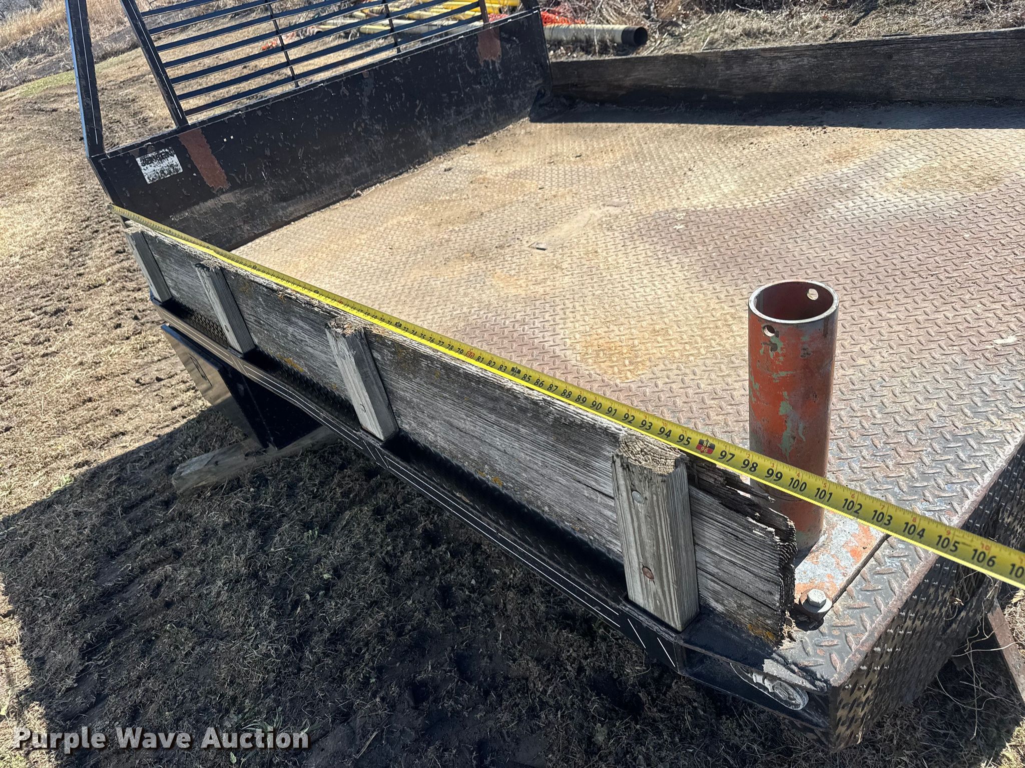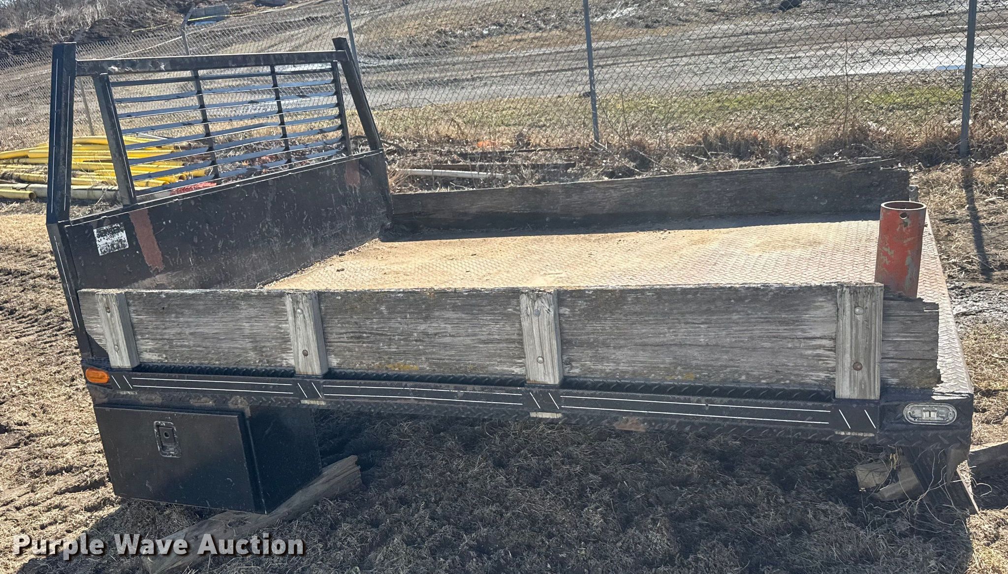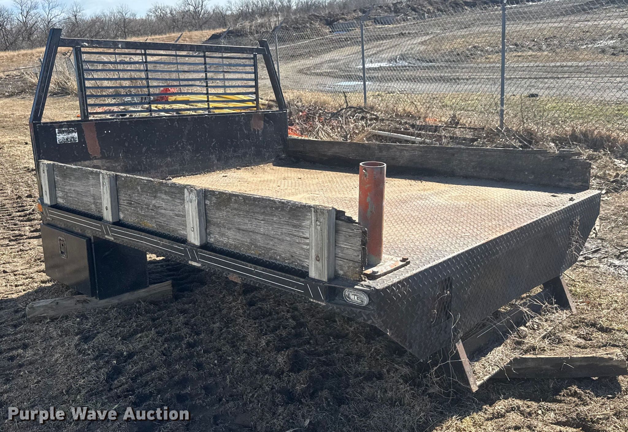 Purple Wave is selling a used Truck Part and Attach. in Kansas. This item is a Jensen flatbed with the following: Bed, Flatbed, Length: 8' 4", Width: 82", Hitch: Gooseneck