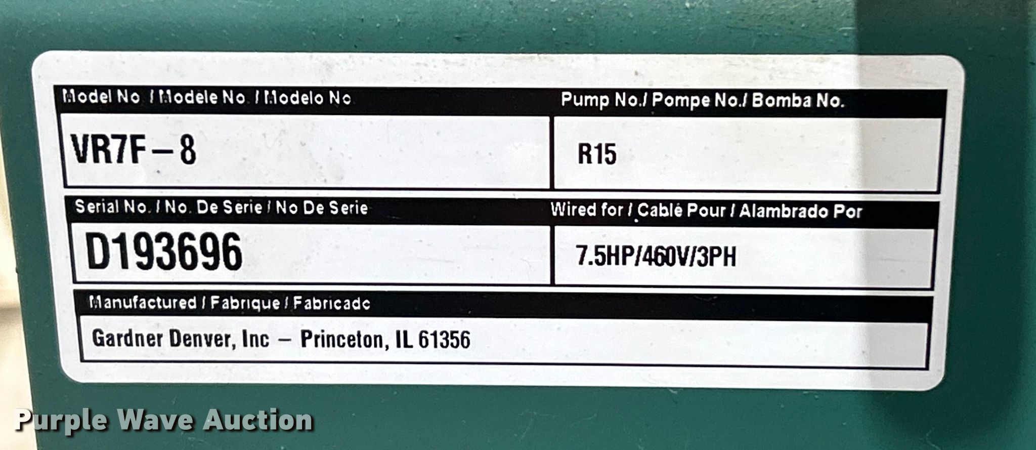 Take a look at this used Champion VR7F-8 air compressor being sold on March 3rd, 2026 in the Tuesday March 03 Government Auction made by Champion. Take a look at all of the item information below or take a look at similar auctions for Compressors.
