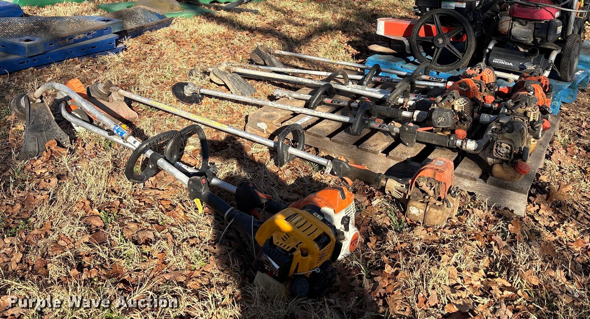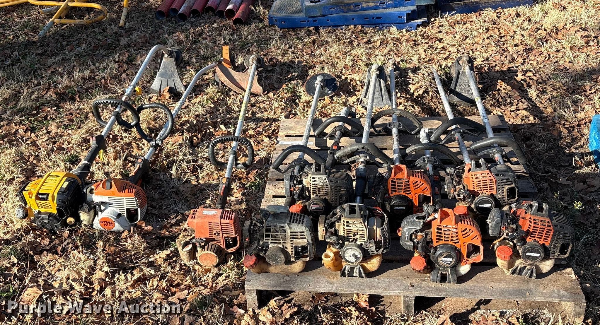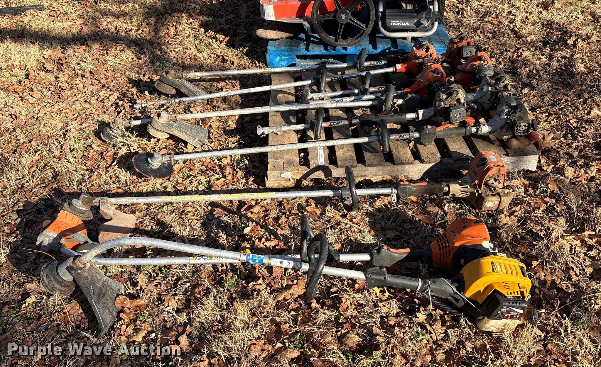 Purple Wave is selling a used Lawn and Garden in Oklahoma. This item is a Lawn equipment with the following: (7) Echo string trimmers, Stihl string trimmers, Stihl edger, Cub cadet string trimmers, (2) quick connects missing lower half, Missing string trimmer head