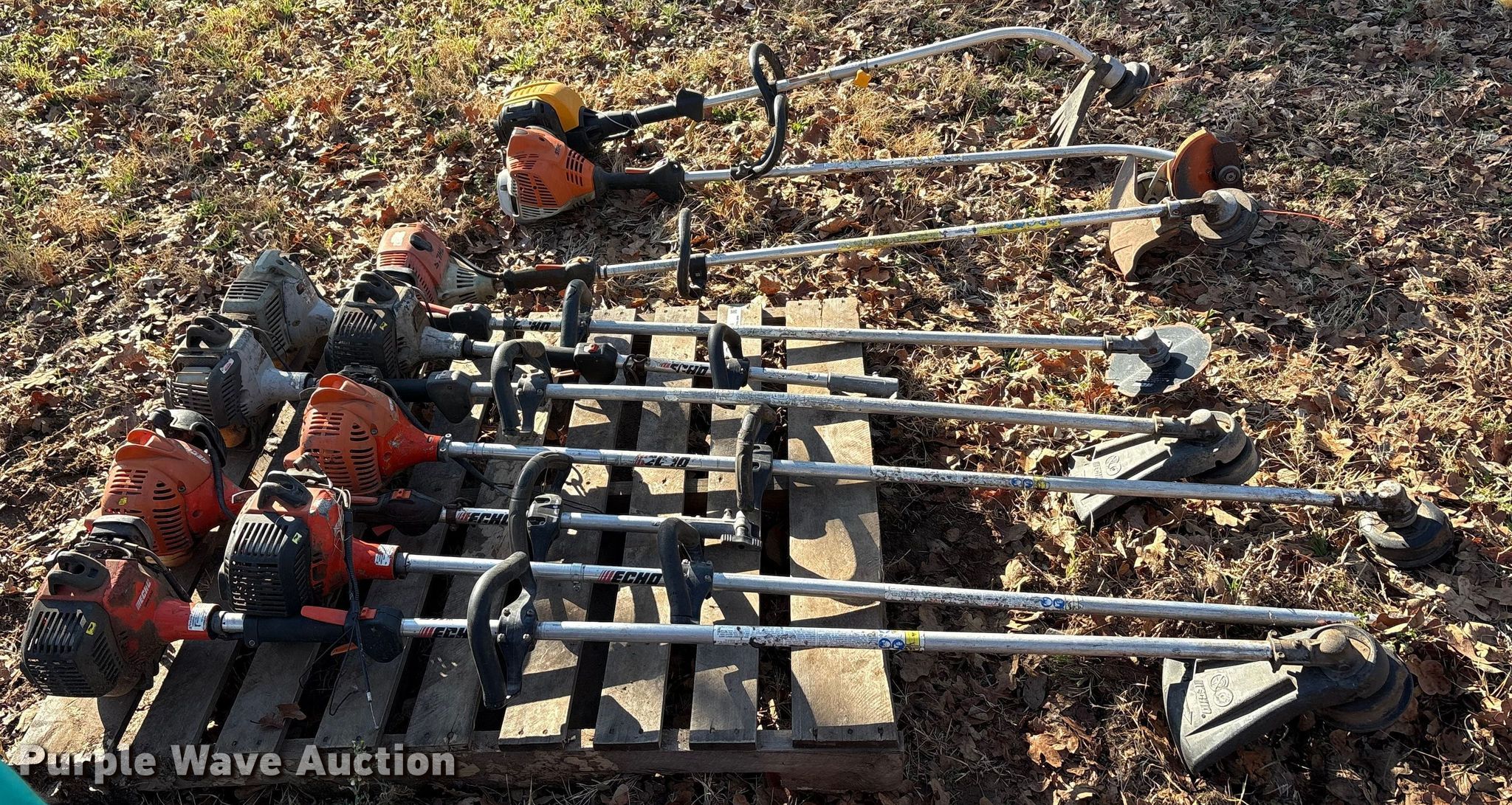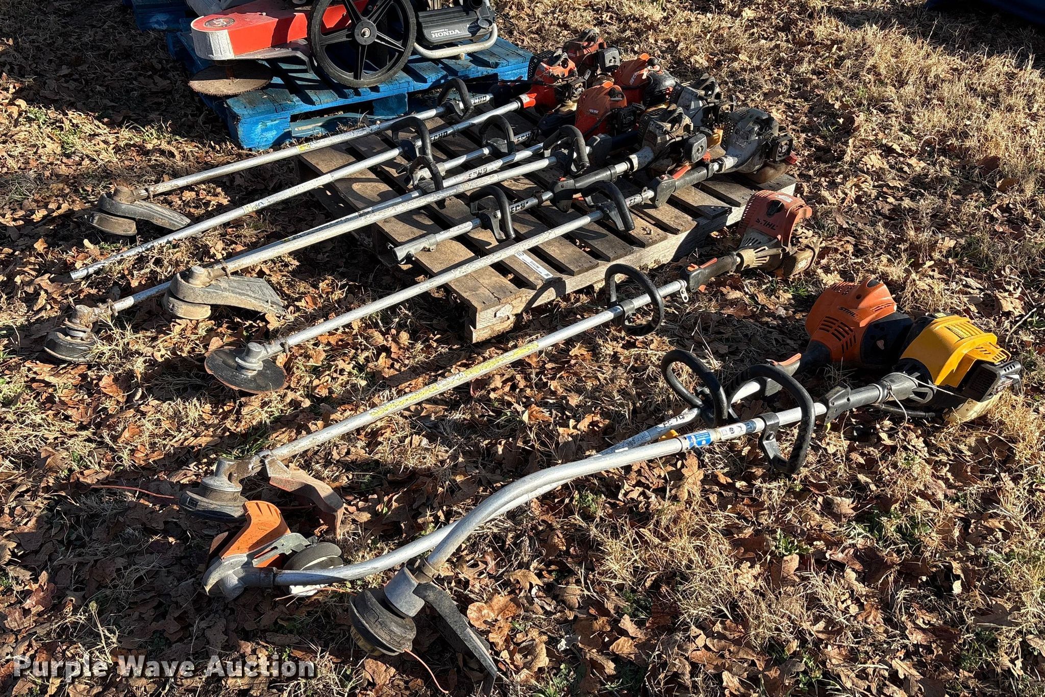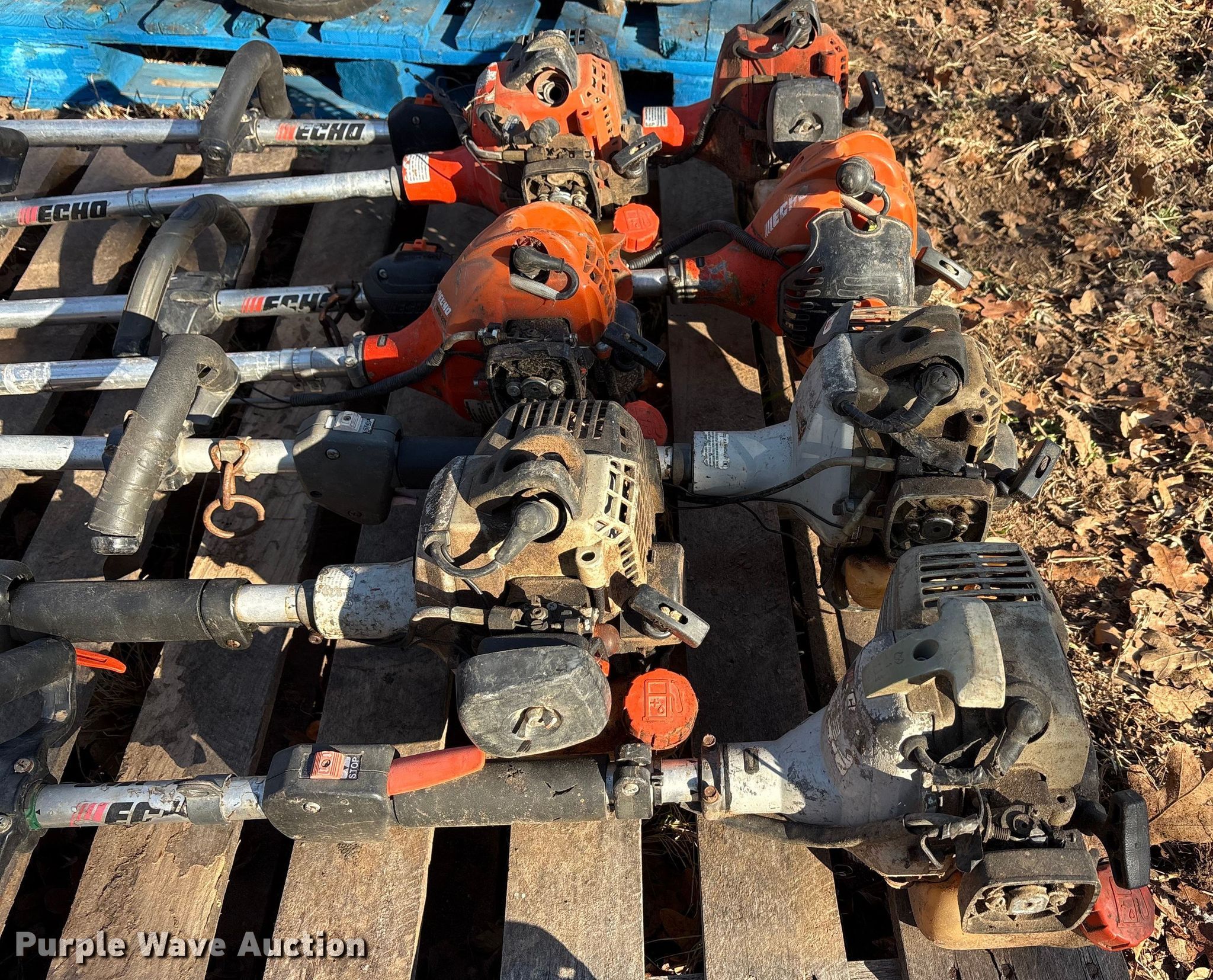 Purple Wave is selling a used Lawn and Garden in Oklahoma. This item is a Lawn equipment with the following: (7) Echo string trimmers, Stihl string trimmers, Stihl edger, Cub cadet string trimmers, (2) quick connects missing lower half, Missing string trimmer head