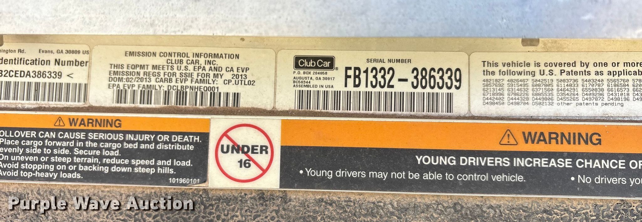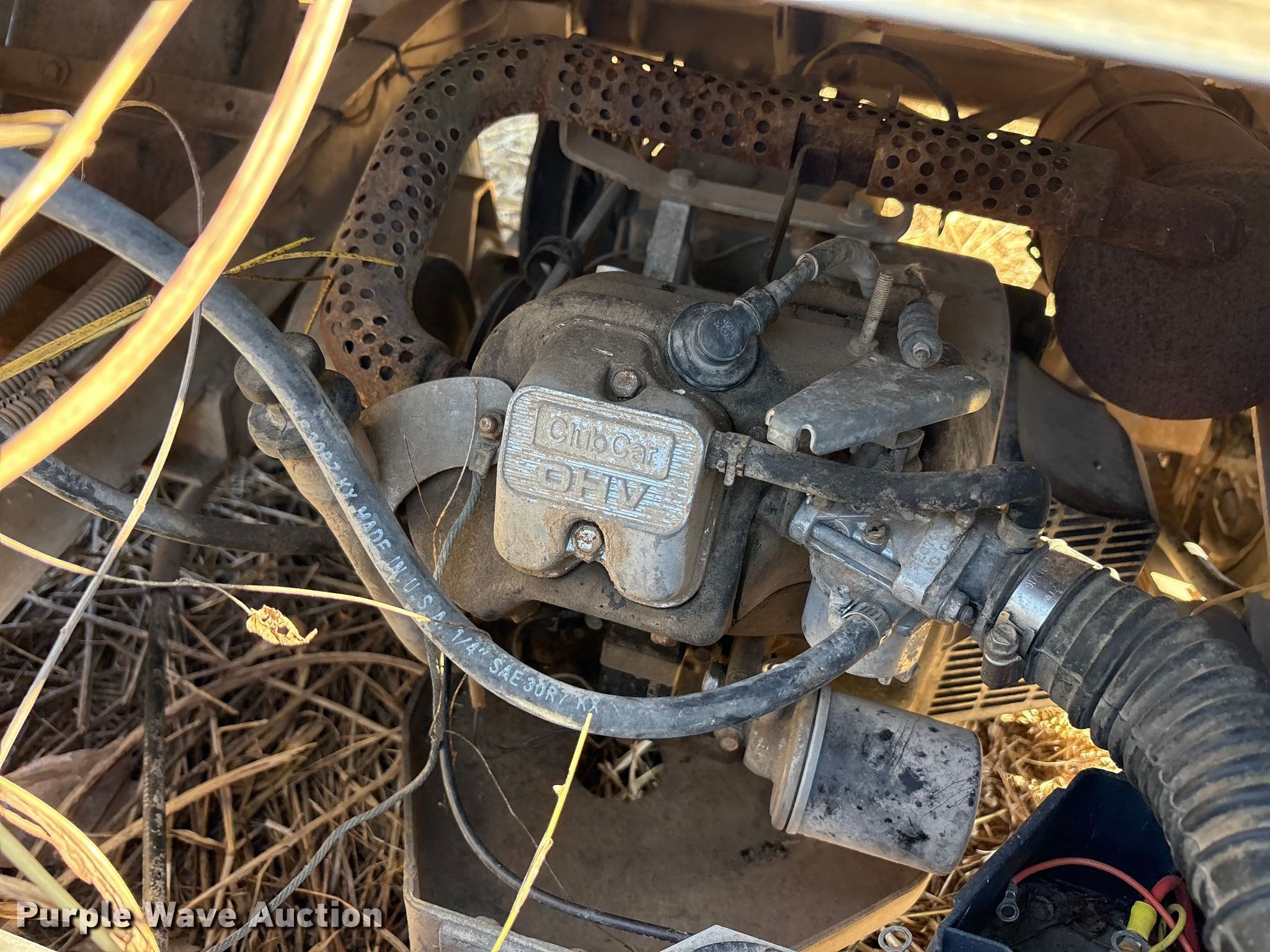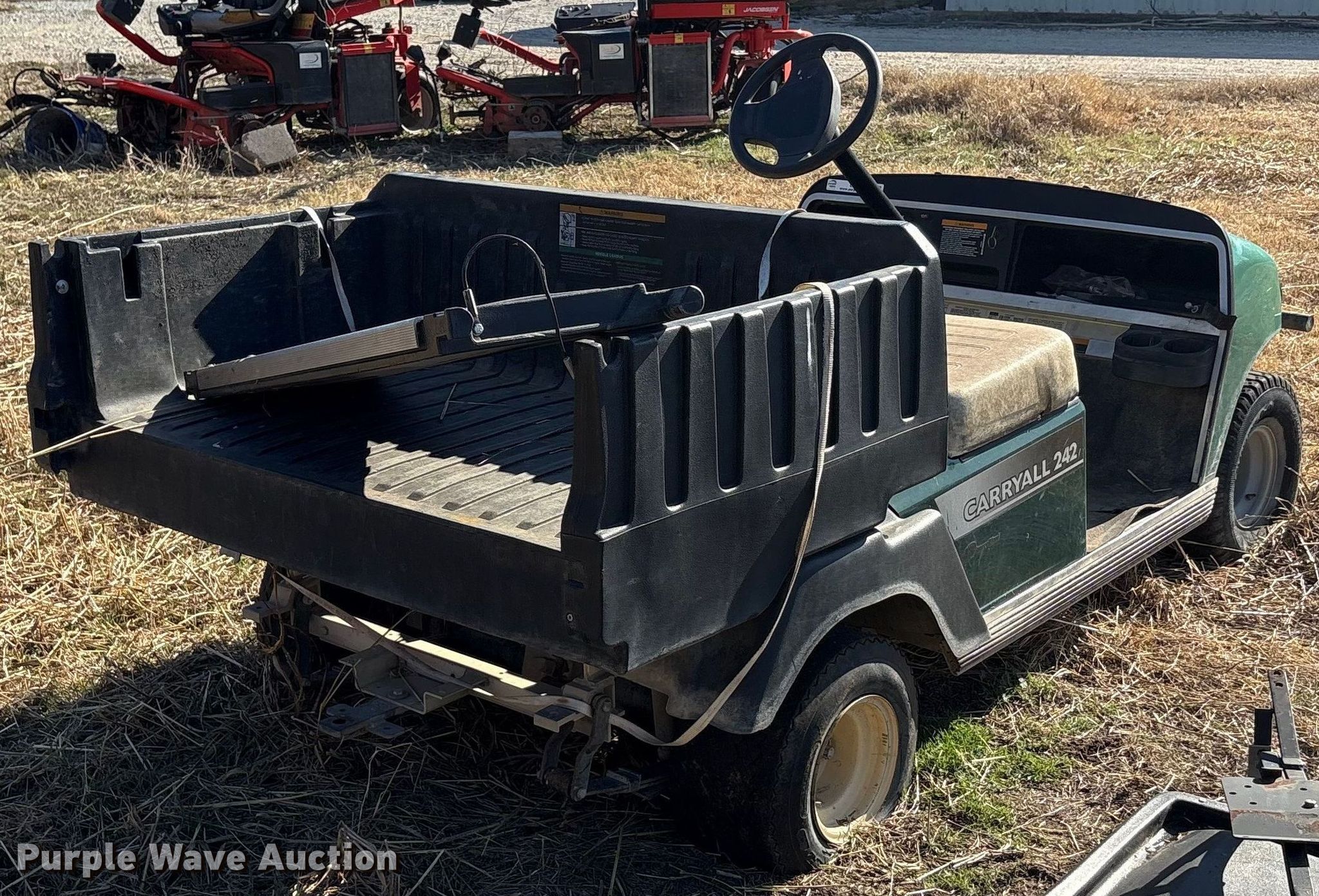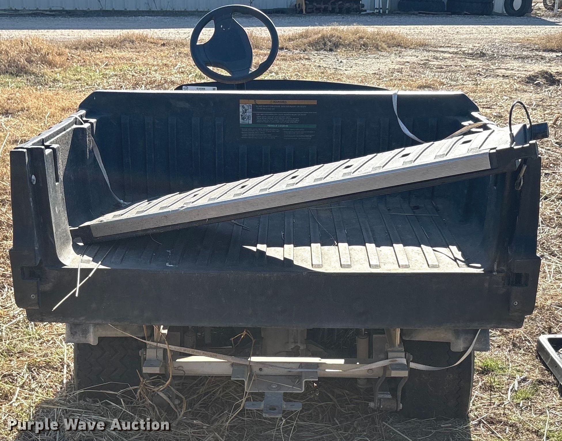 Purple Wave is selling a used Golf Cart in Oklahoma. This item is a (2) golf carts with the following: Hours: 2,131 on meter, Serial: FB1332-386339, Cylinders: 1, Fuel type: Gas, Transmission: Automatic, Manual dump bed, Width: 47", Length: 30", Tires: 20x10.00-8, Tailgate removed, Canopy removed, Non-operational unit