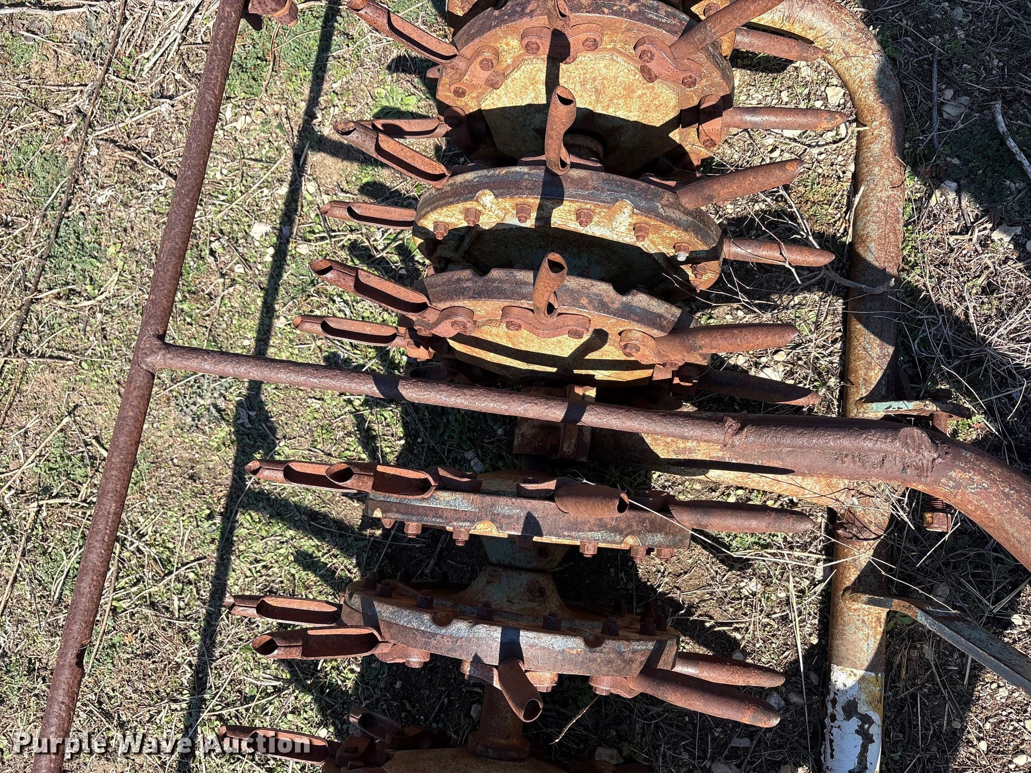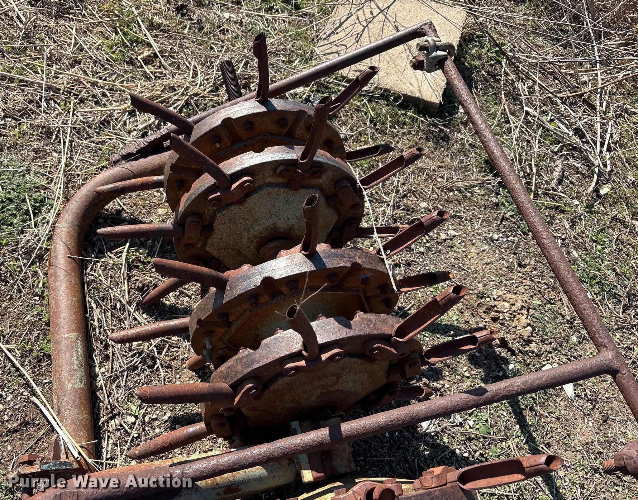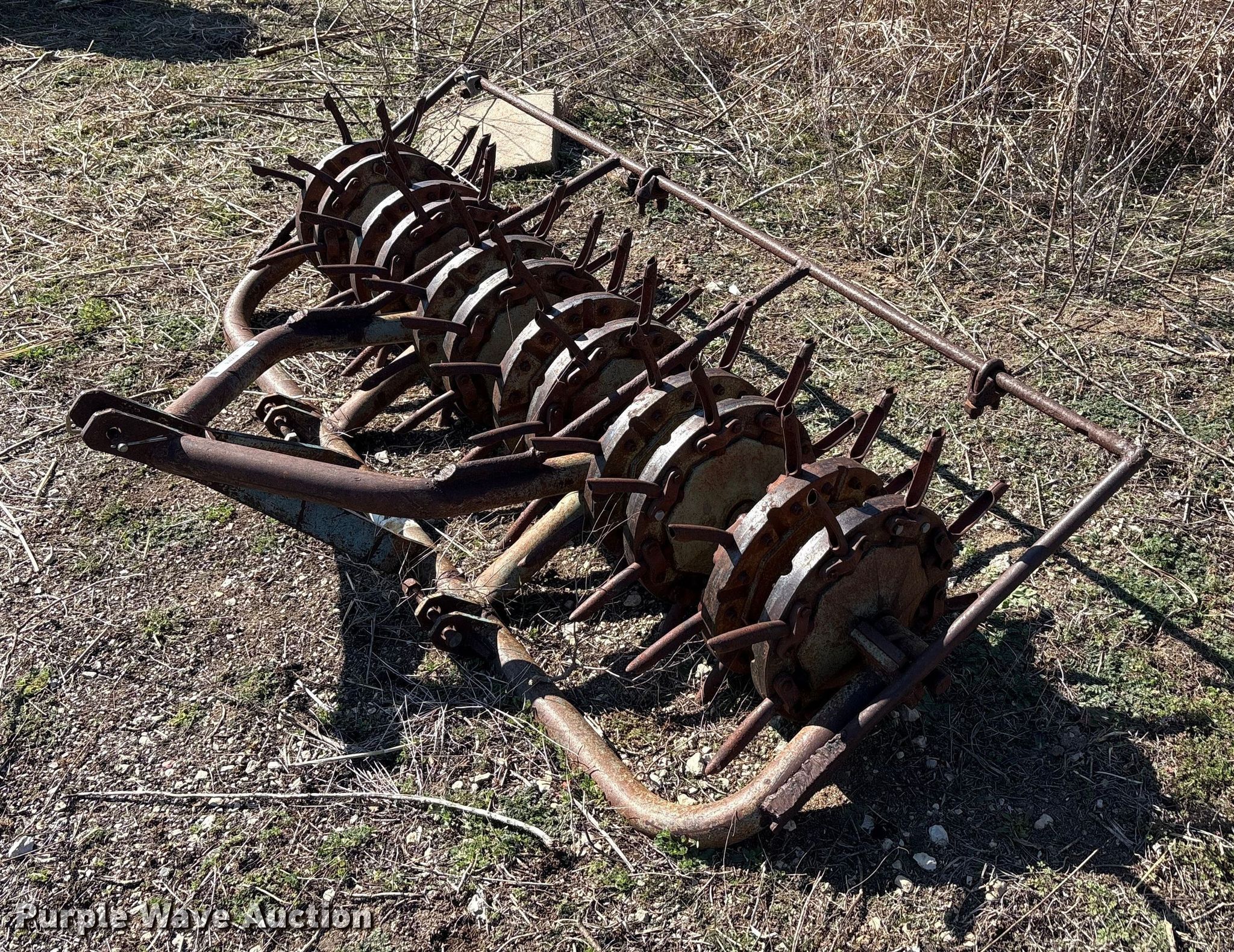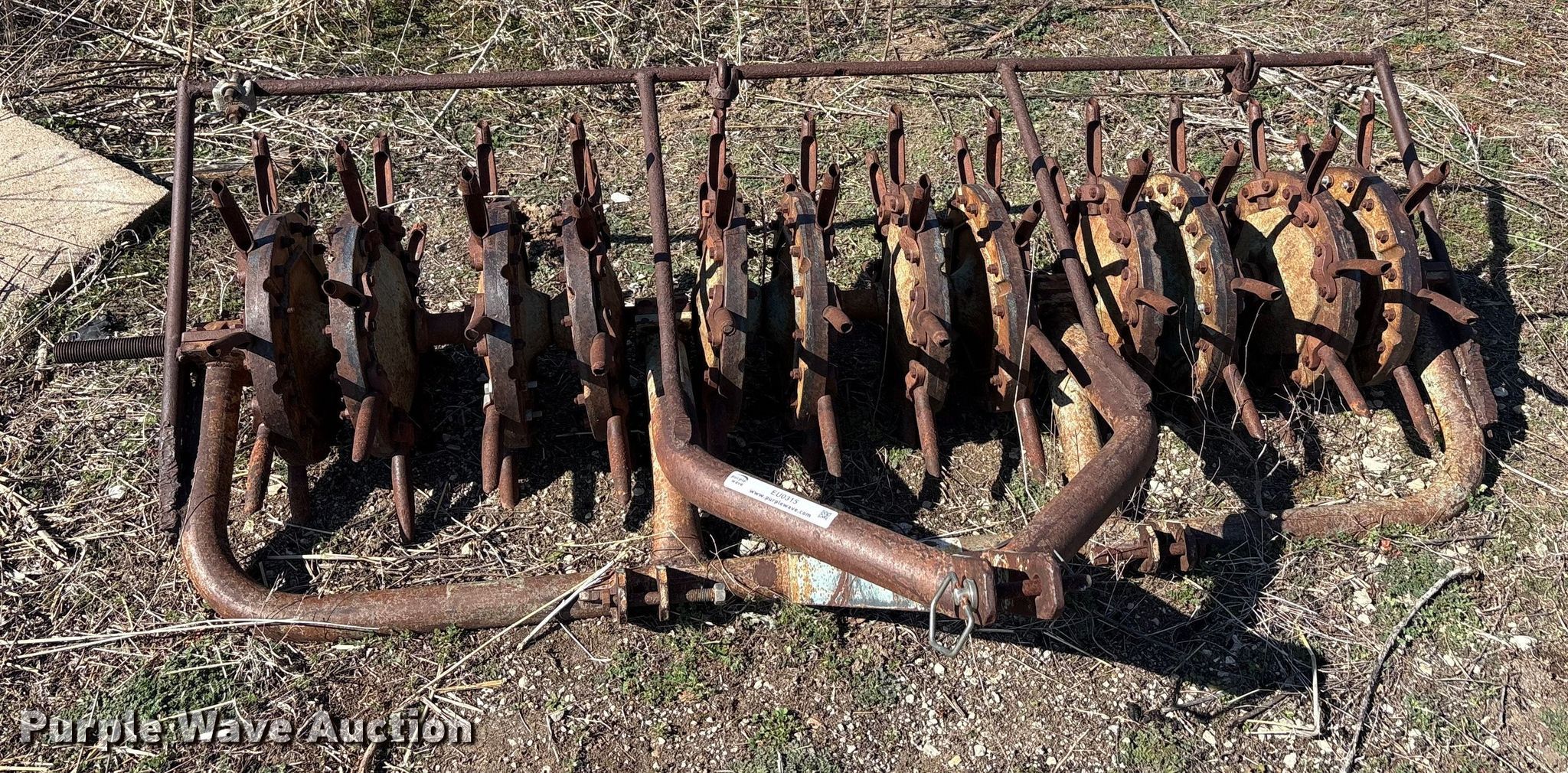 Purple Wave is selling a used Ag Tractor Loader or Attach. in Oklahoma. This item is a Aerator with the following: Hitch: Three point, Spacing: 6", Diameter: 6", Width: 93", Length: 46"