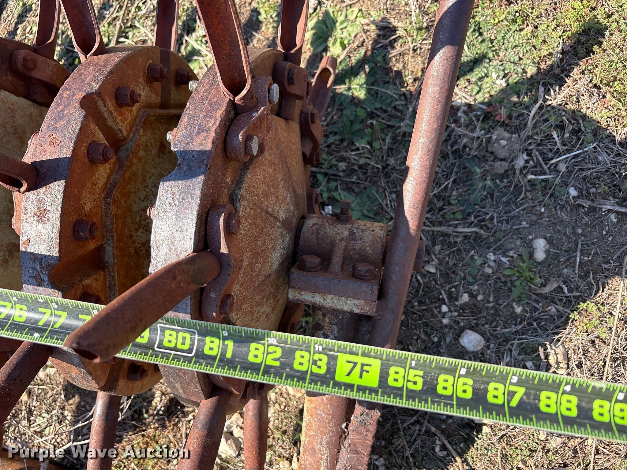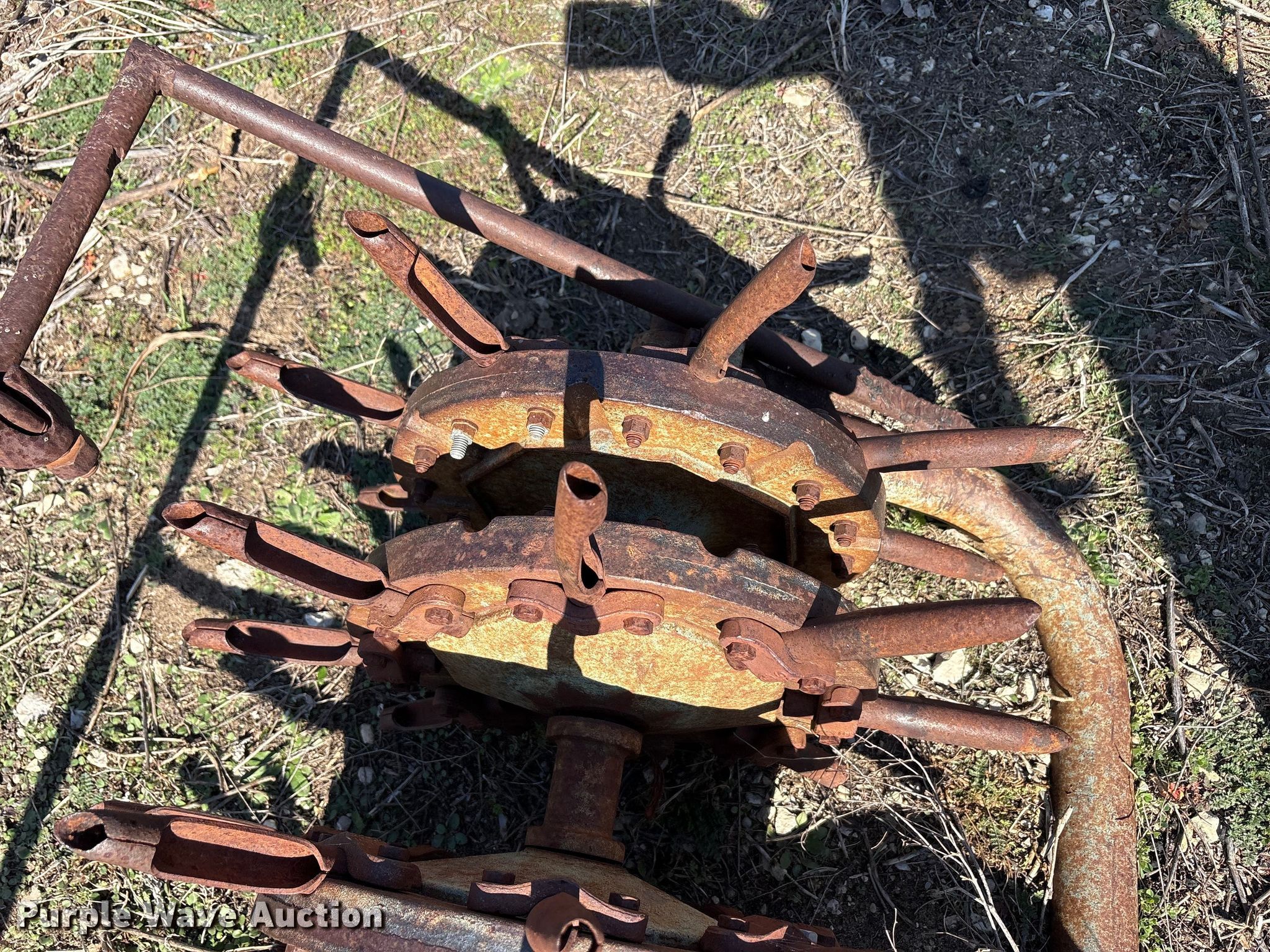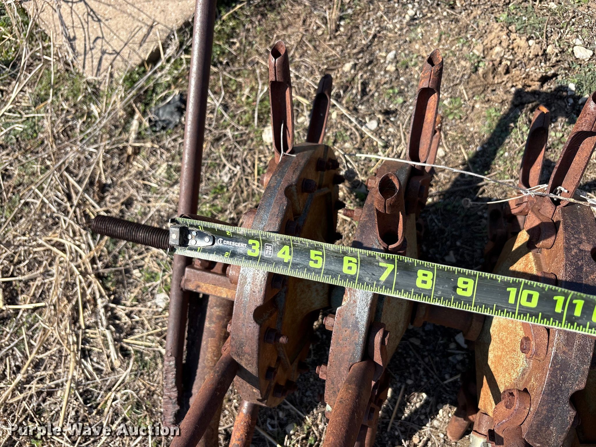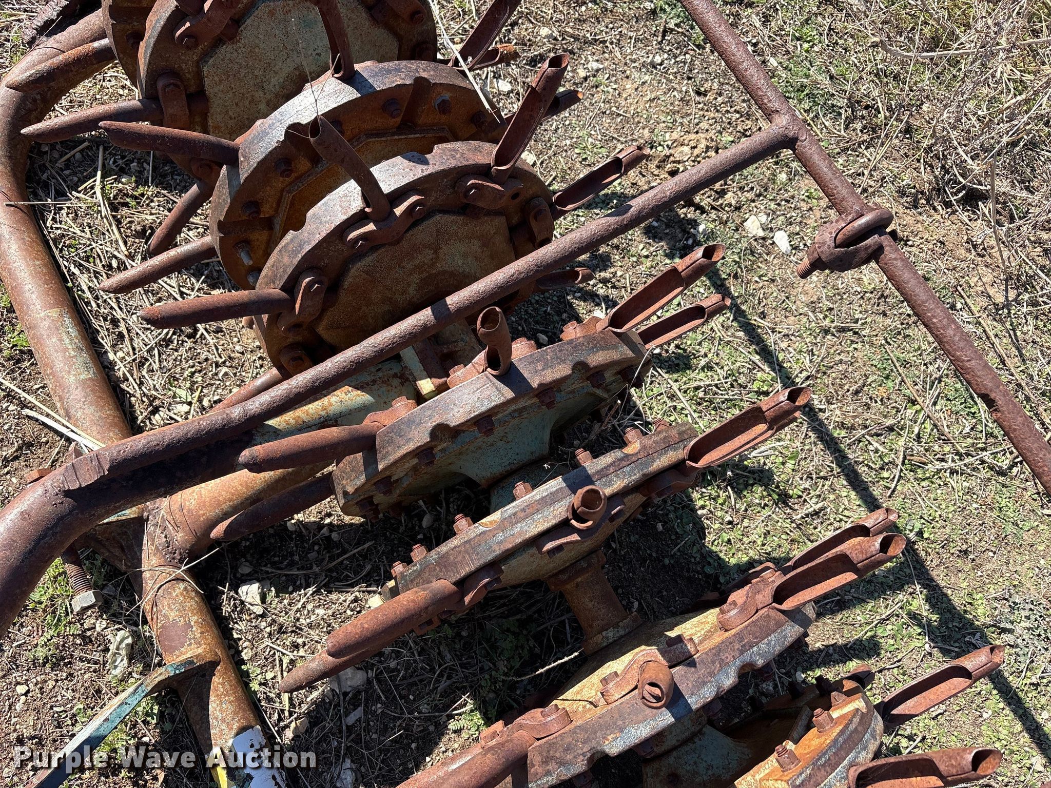 Purple Wave is selling a used Ag Tractor Loader or Attach. in Oklahoma. This item is a Aerator with the following: Hitch: Three point, Spacing: 6", Diameter: 6", Width: 93", Length: 46"