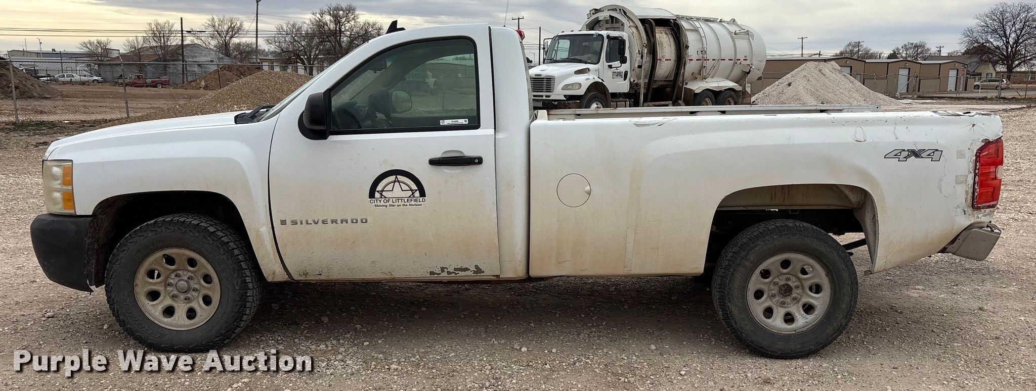 2009 Chevrolet Silverado 1500 pickup truck. Miles: 144,959 on odometer, VIN: 1GCEK140X9Z114015. Engine Displacement: 5.3L, Cylinders: 8, Fuel type: Gas. Transmission Automatic, Four wheel drive. Interior AC, Heat, Cruise control. Tires Size: 265/70R17. Notes Dash warning indicator: TPMS, Airbag, Windshield chipped or cracked, Jump start required during on-site data collection, Drivers door latch issues, does not shut, Radio not included, Tires leak air. Texas title. Title distribution may be delayed up to 14 days from verification of funds. The City of Littlefield, TX. Littlefield, TX 79339