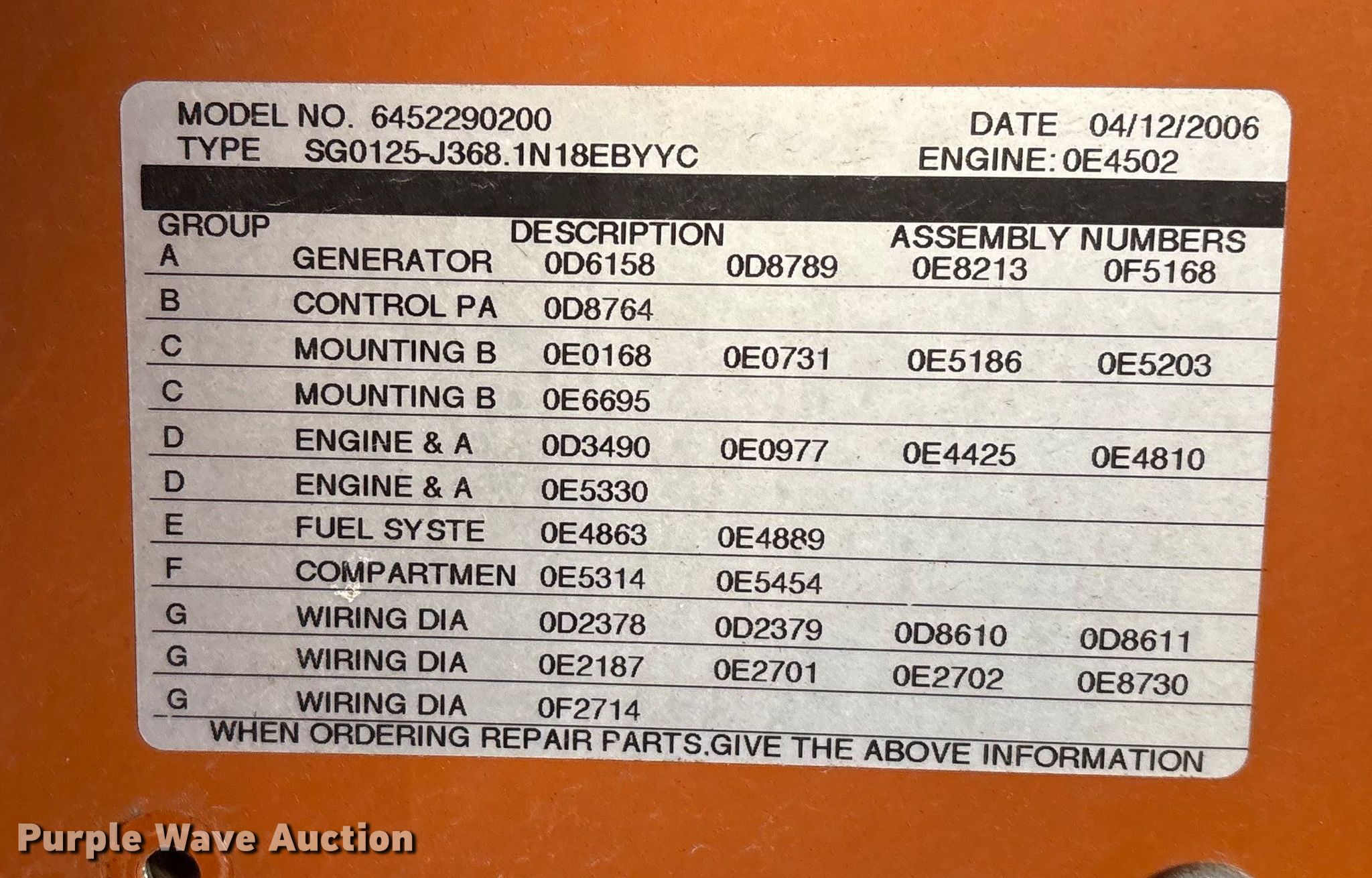Purple Wave is selling a used Generator Set in Texas. This item is a Generac 125KW generator with the following: Serial: 2087874