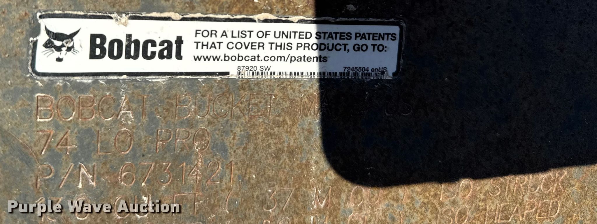 Purple Wave is selling a used Skid Steer Attach. in Kansas. This item is a Bobcat skid steer bucket with the following: Width: 73", Low profile, Cutting edge: Bolt-on