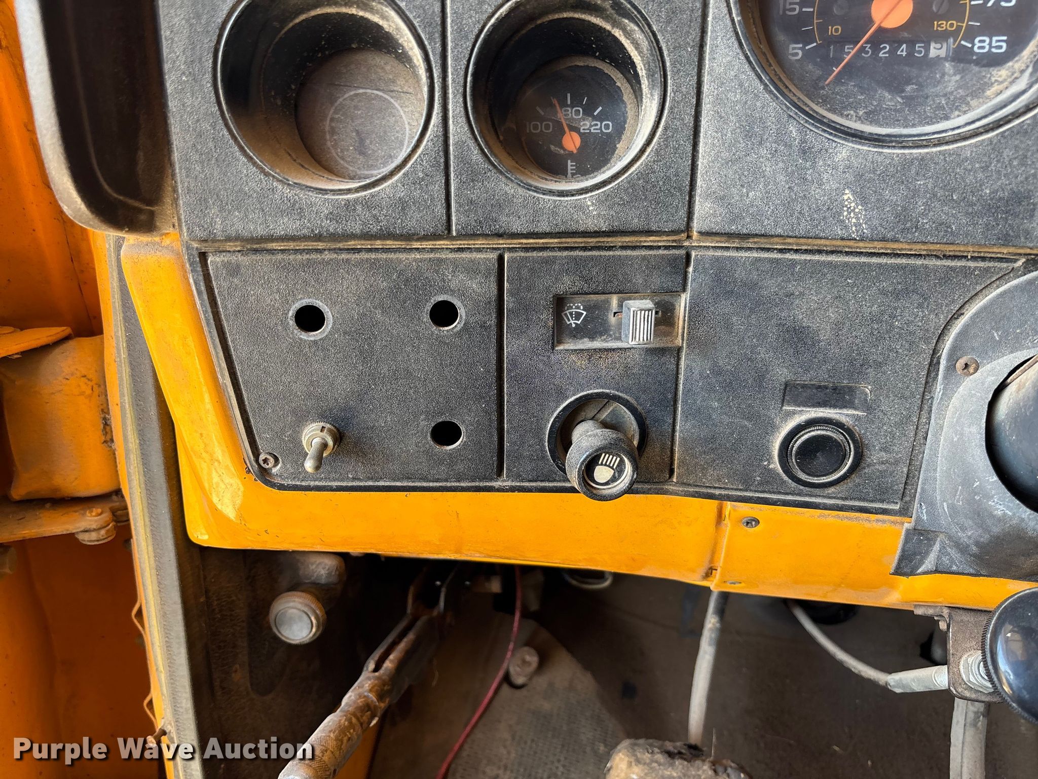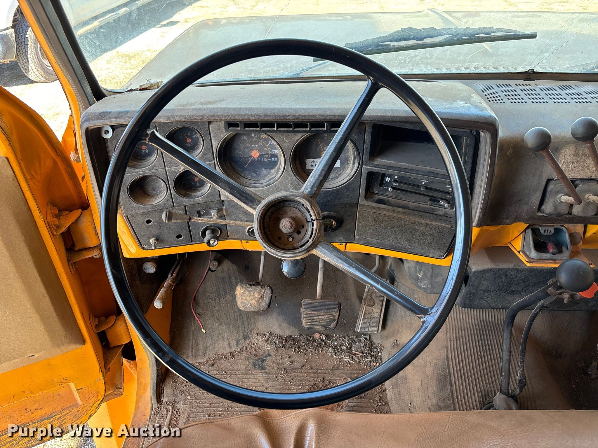 1987 Chevrolet C70 dump truck. Miles: 153,246 on odometer, VIN: 1GBL7D1G2HV109283. Engine Displacement: 8.2L, Cylinders: 8, Fuel type: Diesel. Transmission Manual, Speed: plus 2. Chassis Axles: Single, Suspension: Spring, Brakes: Hydraulic, PTO, GVWR: 27,080 lbs, Wheelbase: 136". Interior Heat. Features Bed Dump bed, Length: 9', Width: 7' 6", Side height: 24", Side board height: 5", Bed type: Steel, Ram: Single, End gate: Manual. Tires Front: 9.00R20, Rear: 11.00R20. Notes Windshield chipped or cracked, Dead battery, Fuel issues Water in fuel , Antifreeze in fuel, Injector issues, need replaced , Non-operational unit, Unit must be towed or hauled. Missouri title. Title distribution may be delayed up to 30 days from verification of funds. City of Miller, MO. Miller, MO 65707