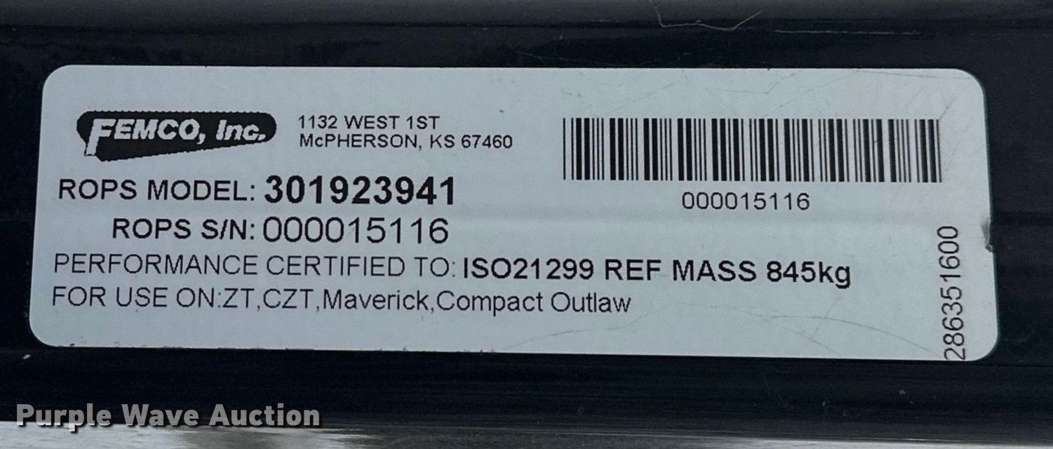 Bad Boy ZT Elite ZTR lawn mower. Hours: 781 on meter, Cutting width: 60". Engine Kawasaki FR730V, Serial: FR730VC23786, Displacement: 726cc, Cylinders: 2, Fuel type: Gas. Transmission Hydrostatic. Operators station OROPS. Tires Front: 13x6.50-6NHS, Rear: 22x11.00-10. Notes Engine issues , Non-operational unit. Cameron, MO 64429